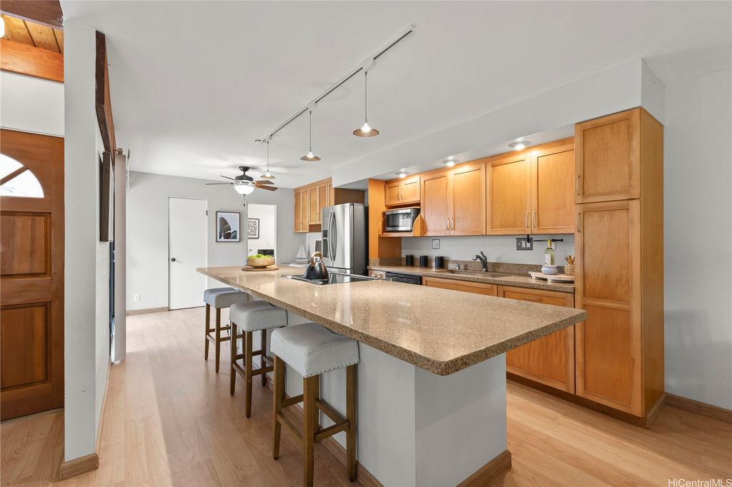 Live steps from world-famous Kailua Beach in this rarely available 2-bedroom, 3-bath residence at The Windsurfer. Located directly across from soft white sand and turquoise waters, this home offers a serene retreat just minutes from Kailua Town and away from the hustle and bustle of Honolulu. Inside, you'll find an inviting open kitchen with granite countertops, hardwood cabinetry, and a newly installed split A/C system throughout. The flexible split level layout features two bedrooms"”each with its own full bath"”plus a third full guest bath on the main level. A bonus loft adds even more versatility for office, or additional sleeping quarters. Your fenced front courtyard allows space for outdoor furniture and potted plants with a large closet where you can store gardening tools or recreational equipment. Relax on the spacious back lanai or take a short stroll to Kailua Beach Park, Lanikai Beach, Buzz's Steakhouse, or Kalapawai Market. The Windsurfer is an intimate, boutique 10-unit community perfectly positioned for beach lovers and outdoor enthusiasts, with paddling, hiking, and windsurfing all close by. Experience the best of Kailua living"”your own piece of paradise awaits.