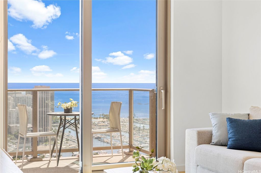 30-night minimum stay. Enjoy the convenience of city living, with resort-style amenities at Sky Ala Moana West! This fully furnished, one-bedroom unit with floor-to-ceiling windows has two full beds and a pull-out couch in the living room. The kitchen is equipped with top-of-the-line Bosch appliances and Quartz countertops. Relax on the private lanai with sweeping city, ocean, and Diamond Head views. Enjoy the lavish spa-like bath after a long day.