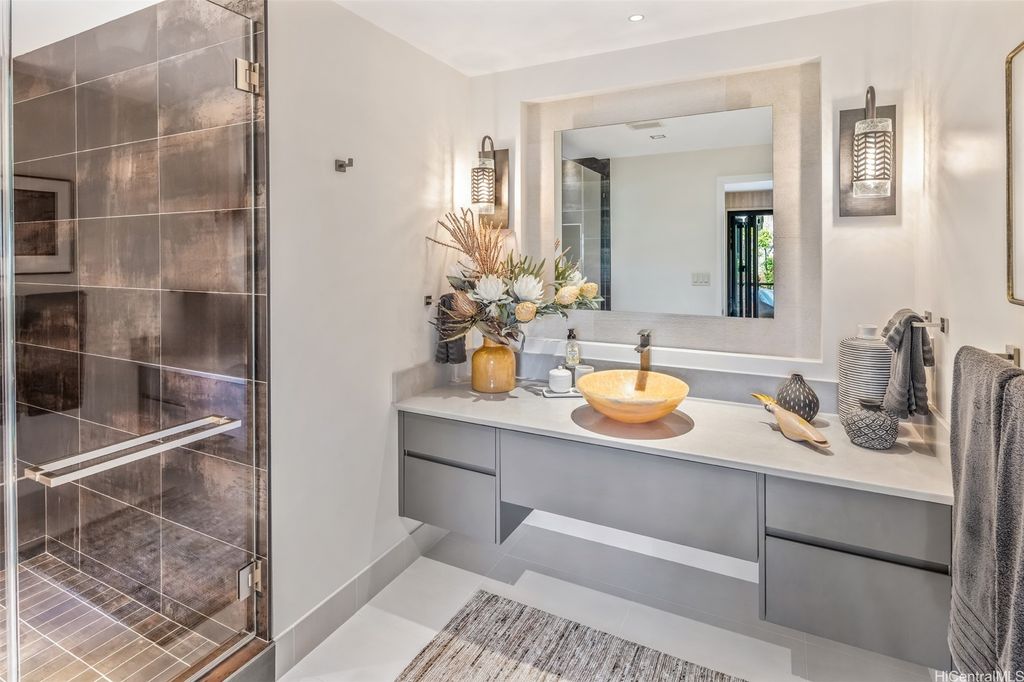 AMAZING NEW PRICE! Experience tranquil beachfront living in one of the most pristine areas along Kailua Beach, featuring stunning ocean views from the modern kitchen, spacious living room, and primary bedroom with a private oceanfront deck. Recent renovations include stylish baths that enhance the contemporary vibe. The custom kitchen flows into a welcoming dining area, ideal for gatherings and entertaining. A cozy cottage offers guest privacy, while ample parking and a three-car garage provide convenience. A dedicated office with courtyard access creates a peaceful workspace. Enjoy the lagoon pool and waterfall spa, with the beach just steps away for swimming, paddleboarding, or relaxing. Minutes from Kailua Beach Park, Mid-Pac Country Club, and Kailua Town, this home combines luxury and convenience. Your dream island lifestyle awaits!