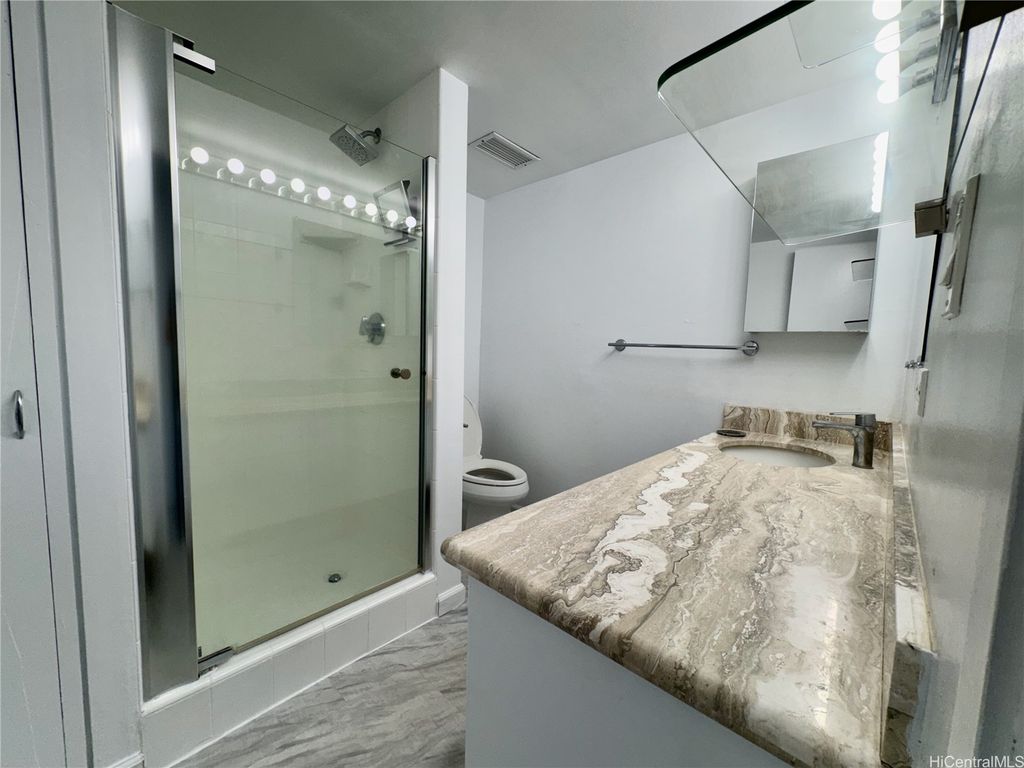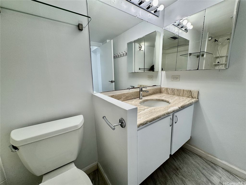 Extensively renovated 2/2 with 2 assigned parking stalls, situated in the preferred '01' corner unit with wrap around lanai. Updated kitchen and bath cabinets with Quartz countertops. Spacious floor plan would easily accommodate a large dining table and chairs. Bright and airy units with unobstructed panoramic views from Diamond Head to the Waikiki and City skyline. Both Bedroom closet include thoughtful closet organizers.