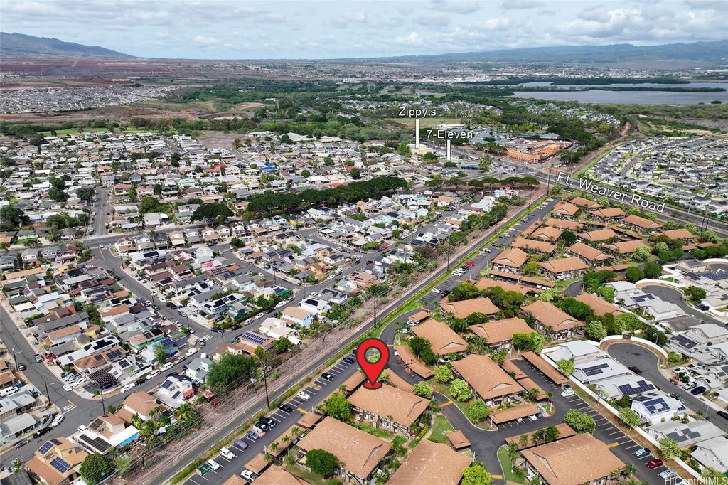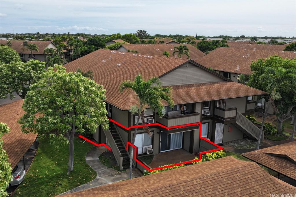 Welcome to Palm Villas! This desirable ground-floor corner unit features 2 bedrooms and 1.5 baths. A major highlight is your DAILY CONVENIENCE: one-car covered parking stall located just steps from your front door, providing comfort and SAFETY. An additional open stall is DIRECTLY ACROSS COVERED STALL, BOTH VISIBLE FROM UNIT. The mailbox cluster, a set of visitor stalls and trash facility are JUST STEPS AWAY FROM THE FRONT DOOR, making daily routines easy and secure. The unit also offers a fenced-in lanai, perfect for privacy and outdoor enjoyment, WITHOUT VIEW of NEIGHBORS. Conveniently located minutes from neighboring strip malls, KA MAKANA ALI'I, and beautiful West O'ahu beaches, shopping, and dining.