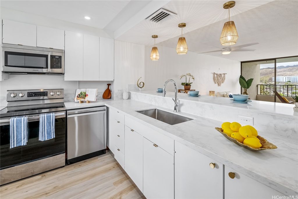 Enjoy resort-style living at The Esplanade in Hawai"˜i Kai! Located in building 1, this 6th-floor 2BD/2BA residence offers sweeping Diamond Head and marina views from private lanais. Features central AC, 2 side-by-side covered parking stalls, extra garage storage, 24 hour security, a boat slip (included in monthly maintenace fee) and a pet-friendly community. Amenities include a heated saltwater pool, jacuzzi, gym, steam rooms, tennis/pickleball courts, BBQs, putting green, workshop, and car wash area. Convenient to shopping, dining, beaches, and hiking. Fully insured, VA-approved, and sold As Is.