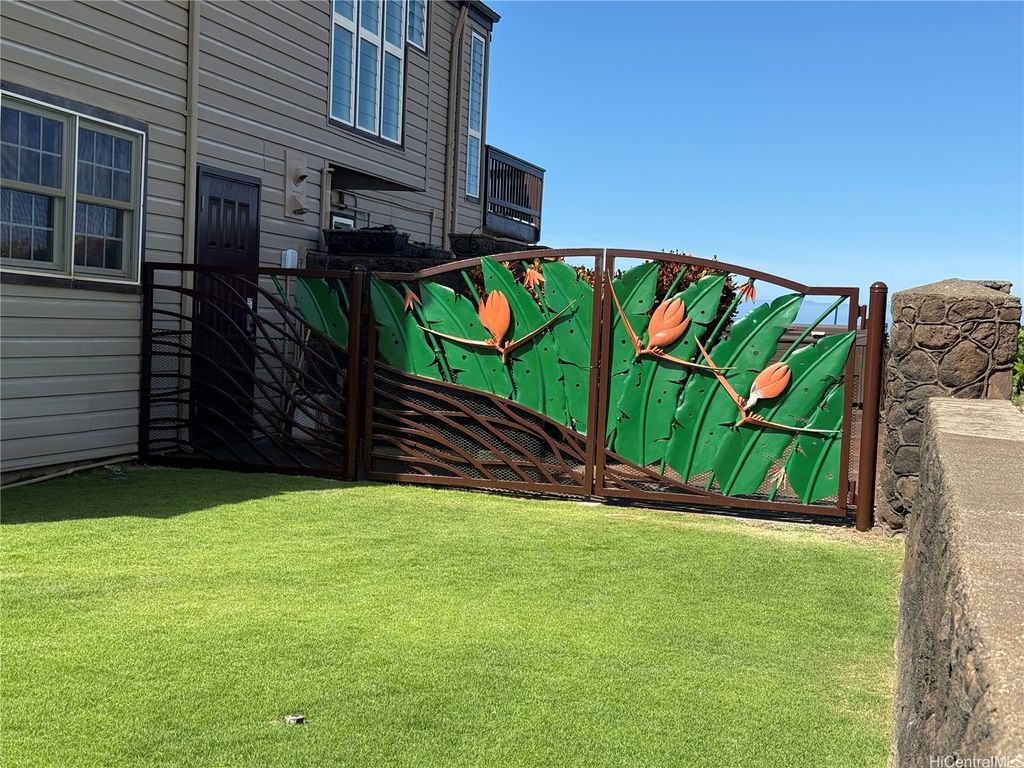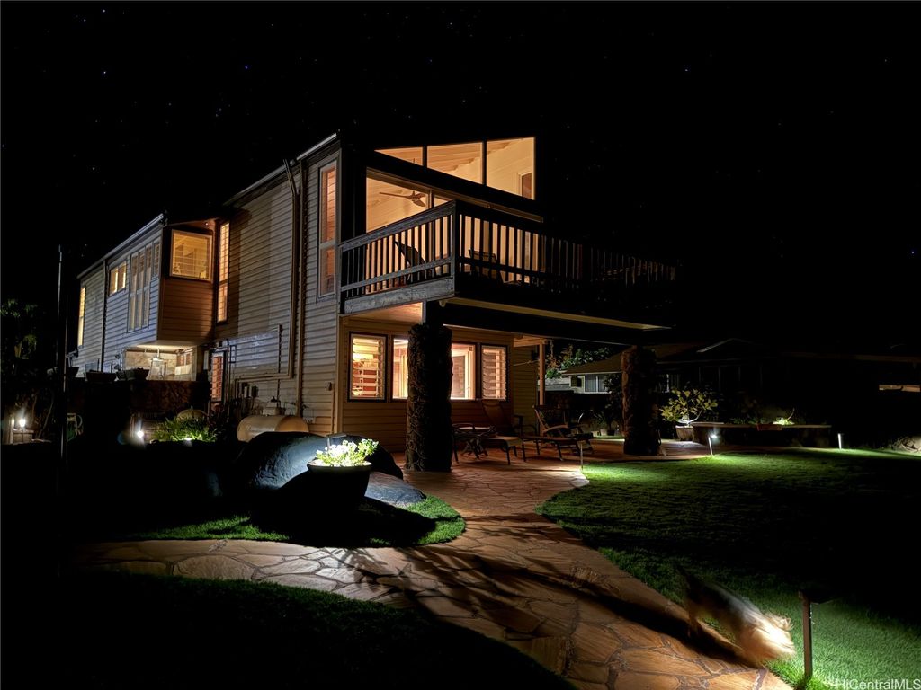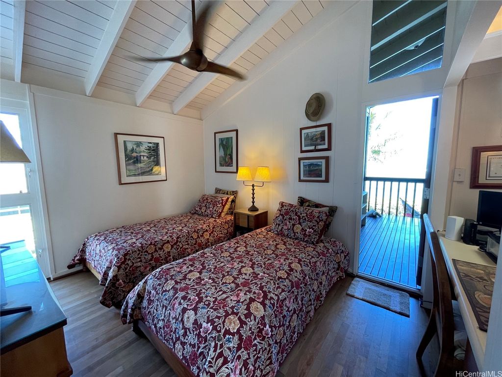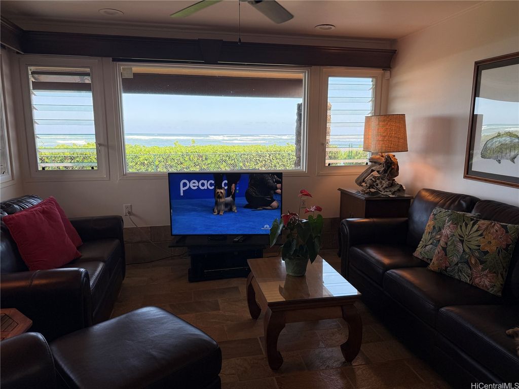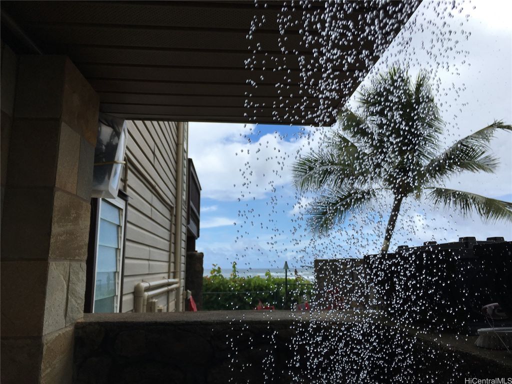A rare beachfront opportunity in Waialua this exceptional estate offers over 66 feet of ocean frontage along a beautiful white-sandy beach. Enjoy the best of North Shore living with stunning ocean views, turtles and seasonal whale watching right from your backyard. This gated estate features tiled, salinated, lava rock, solar-heated, swimming pool, surrounded by lush tropical landscaping and expansive quartzite patios. This residence has been beautifully remodeled with African mahogany finishes, travertine, cherry cabinetry, Sub-Zero and Wolf appliances, and custom copper/aluminum roofing. Designed for flexibility and comfort, the home offers multiple living configurations ideal for multigenerational living or investment (duplex style 3/2 up and 1/1 down). Highlights include four spacious bedrooms, three custom bathrooms, a home office/guest suite with a separate entry and panoramic ocean views through custom coastal windows and sliding glass doors. Modern amenities include 24 owned PV panels with net metering, monitored security, and an on-demand gas water system. Experience the serenity and privacy of Waialua's beachfront lifestyle- swim, surf, or relax to the sound of the waves.