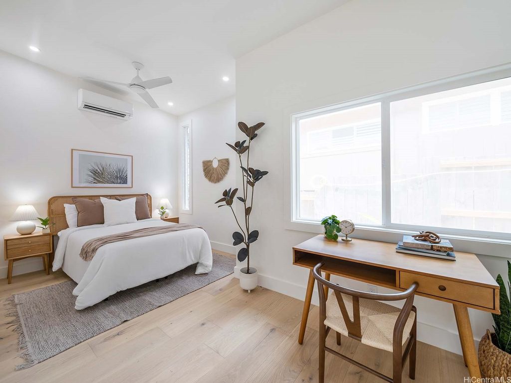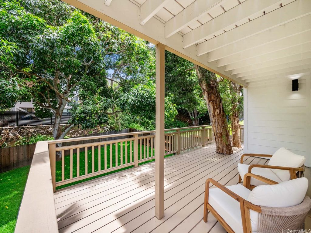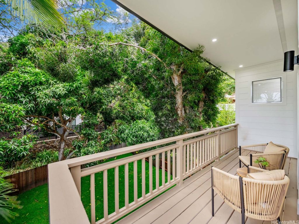 Experience elevated island living in this fully renovated Lanikai retreat where luxury, privacy, and the natural beauty of Hawaii come together. Just two blocks from a secluded beach cove and a short paddle to the Mokulua Islands, this thoughtfully designed property captures the laid-back yet refined Lanikai lifestyle. Enter through a landscaped courtyard into a 3-bed, 3-bath main home featuring two spacious primary suites, customizable closets, and open-air lanais that make indoor-outdoor living effortless. High ceilings, large sliding doors, hardwood floors, large-format tile, and custom cabinetry reflect quality at every turn. The kitchen features a generous island, sunlit dining nook, and designer finishes ideal for casual meals or entertaining. Surrounded by mature landscaping, the property offers room for a pool in either the front courtyard or level backyard. A detached 1-bed, 1-bath suite with wet bar, laundry, and large private lanai above the garage offers versatility for guests, multi-generational living, or rental income"”while preserving privacy for the main residence. Furnishings and decor negotiable with purchase, creating a turn-key paradise ready for your enjoyment.