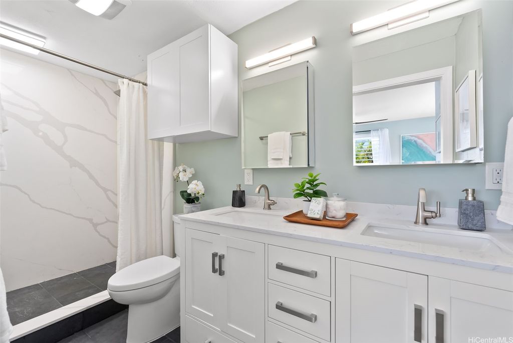 Beautifully remodeled in 2024, this coastal-chic Kailua home offers flexible living in one of Hawai"˜i's most desirable beach towns. Tucked on a quiet cul-de-sac, this breezy property features three separate living areas"”perfect for multigenerational living, rental income potential, or a separate home office / home school / home gym. The second-floor main home includes a bright 3BD/2BA layout with sea-glass designer tones, while the ground level offers a stylish 2BD/1BA unit plus a spacious studio. Enjoy 6 bedrooms, 4.5 baths, two full laundries, an extraordinarily spacious garage, and a carport. Live in one space and rent the other two with ease. Just moments from windsurfing paradise Kailua Beach. One lot away from the world-famous Kawainui Marsh. This beautiful home embodies easy island living with room for everyone. Short walk to Kailua town with lots of beachy boutiques and popular dining options. Peace of mind with the fresh remodel and home warranty. Tenants on month to month leases.
