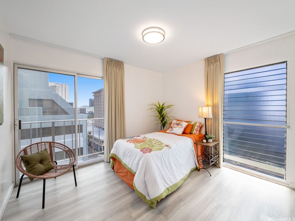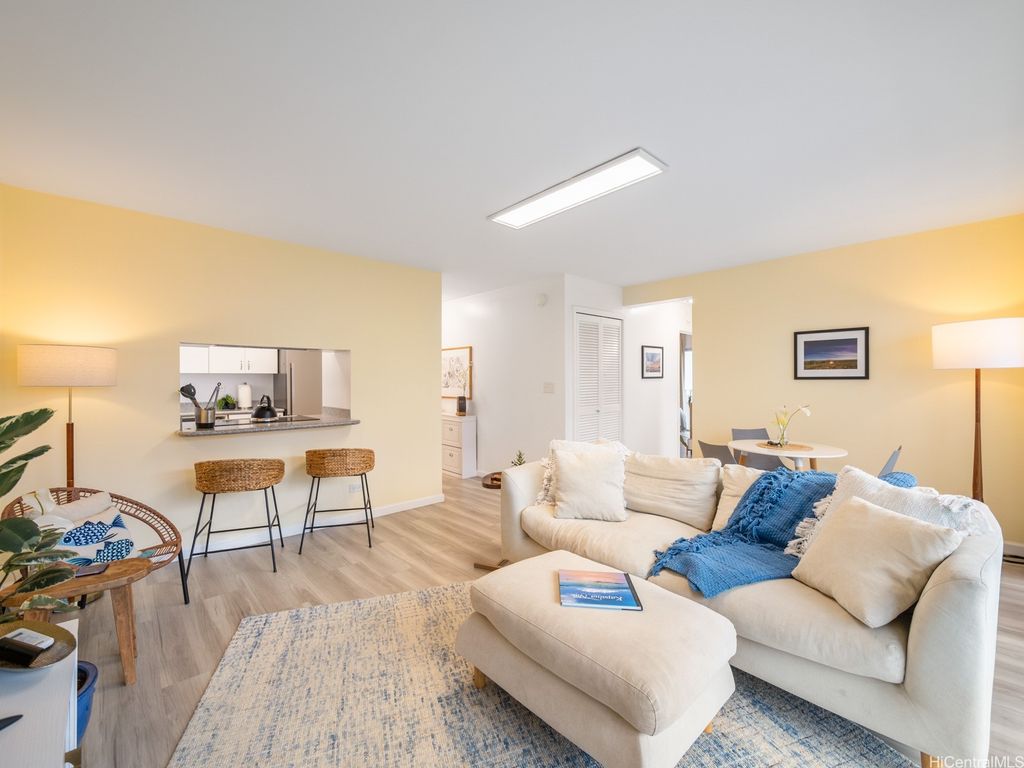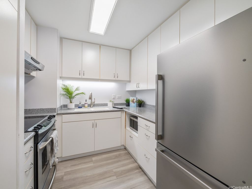 Welcome home to Coty Tower "” a rarely available corner unit on the 15th floor featuring 2 bedrooms, 2 bathrooms, and 2 assigned parking stalls. Enjoy partial ocean, city, and treetop views from this bright and breezy residence. The unit has been tastefully updated with vinyl flooring, fresh paint, modern appliances, tinted windows, curtains, and updated lighting and plumbing fixtures. Popcorn ceilings have been removed and skim-coated for a clean, modern look. Coty Tower is a secure, well-maintained building with only four units per floor, resident manager, and FOB access. Conveniently located near Ala Moana Shopping Center, Don Quijote, Walmart, Target, beaches, dining, and bus lines "” offering the best of city living in the heart of Honolulu. Washer/dryer in unit.