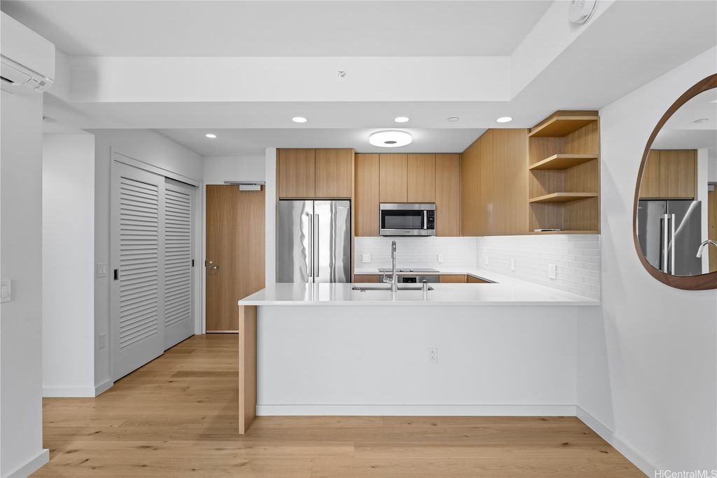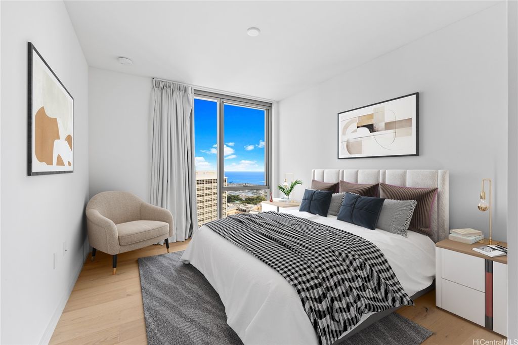 Welcome to Sky Ala Moana West! Experience elevated island living in this stunning high-floor 1-bedroom, 1-bath residence with one parking stall. Enjoy sweeping ocean and Diamond Head views from your private lanai. Perfectly situated just steps from Ala Moana Shopping Center, premier dining, grocery stores, and the beach park, this contemporary home offers unmatched convenience and comfort. Resort-style amenities abound unwind in two spas and saunas, relax by the poolside cabanas, host gatherings in private dining rooms and BBQ pavilions, or stay active in the large fitness center, outdoor workout area, and dog park. Families will love the playground and lush open spaces designed for modern island life. Live, play, and thrive in the heart of Honolulu at Sky Ala Moana West.