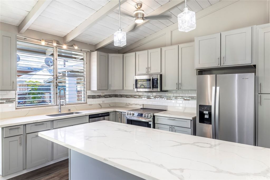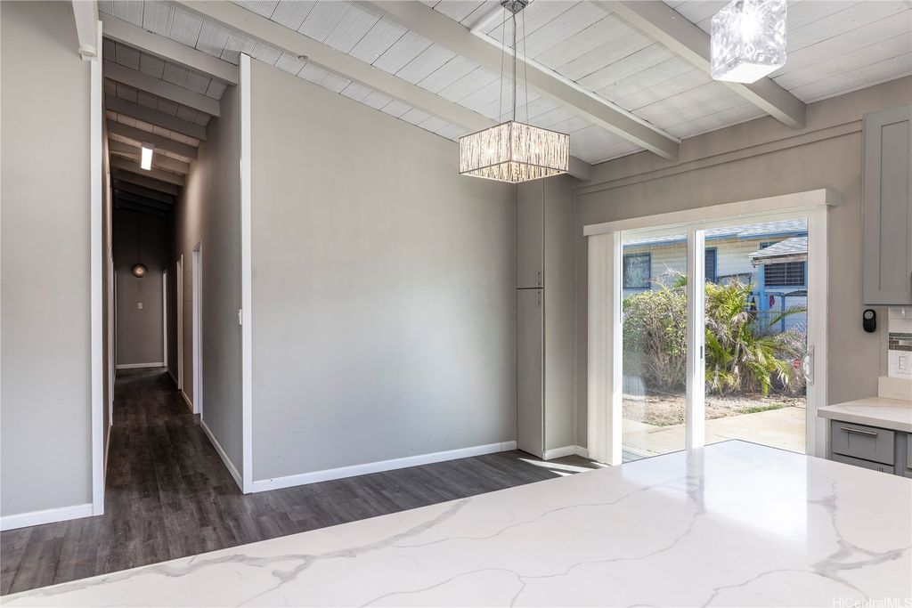 Excellent condition 5bd 2 ba. Well maintained luxury waterproof vinyl planks, carpet in bedrooms, ceramic tiles in bathrooms, easy maintenance Quartz countertops, Adjacent sliding door to an outside open patio area of 399 sf, plus covered patio 56 sf, well groomed landscape plantings, fruit trees, and new sprinkler system. # of bedrooms differs from Public Records. Property is on a nicely manicured cul de sac with a little mountain view for flavor and sits a half block to beautiful Maili Beach Park. Solar lease transfers with the property approximately $190/mo. Don't miss out on this hidden GEM.