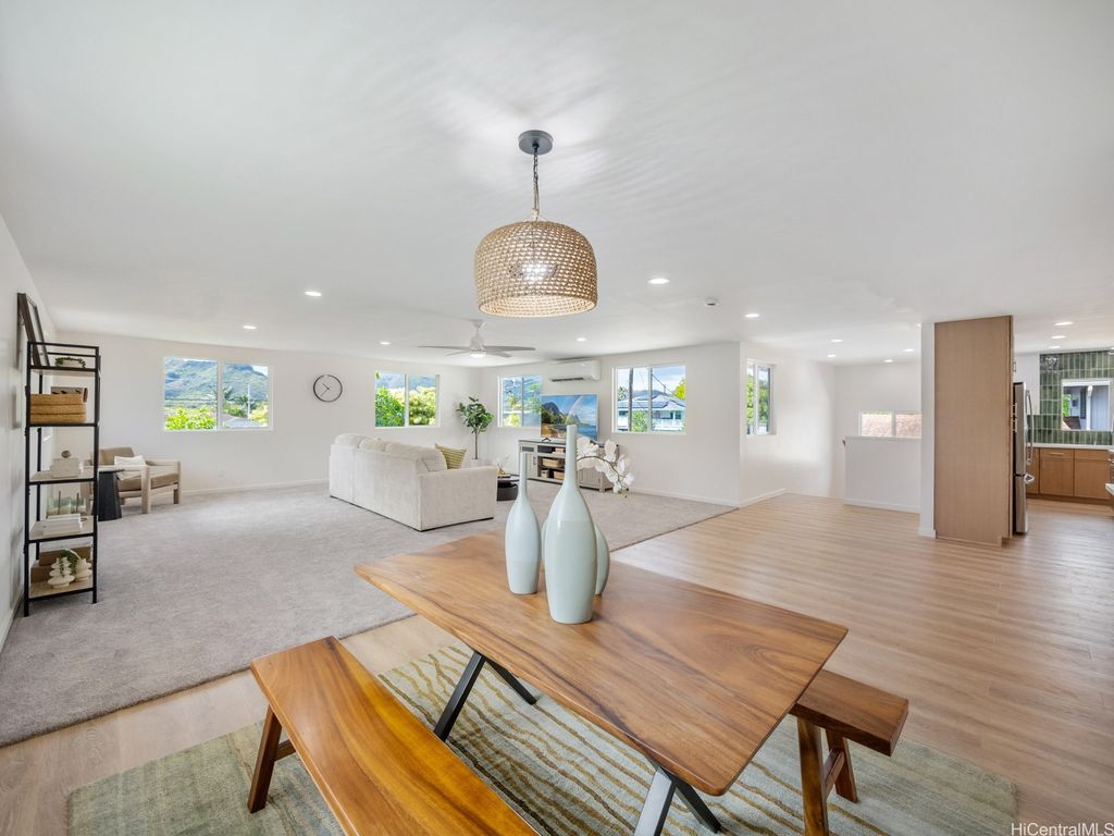 Brand new construction in Kailua's Coconut Grove neighborhood! This 2-story, 5-bedroom, 3-bath single-family home is thoughtfully designed for multi-generational living. The lower level offers 2 bedrooms, 1 bath, and a wet-bar-- ideal for extended family or guests-- while the upper level includes 3 bedrooms, 2 baths, and a bright living room filled with natural light and mountain views through large windows. Enjoy two expansive covered lanais, including an upstairs lanai perfect for relaxing or entertaining with scenic views. Modern finishes and stainless steel appliances complement this fresh, functional layout. A 2-car garage plus driveway parking provides ample space for vehicles and storage. Conveniently located near Kailua Beach, schools, shopping, and dining. For estimated property taxes, assessed value is only land value as the county has yet to assess the improvement value of the subject property. Next Open House Sunday, December 7th, 2-5 pm.
