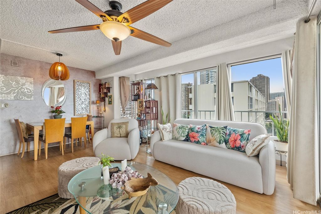 Welcome to Sunset Tower #1404, a cool and quiet corner residence offering spectacular panoramic ocean views stretching across Ala Moana Center, Magic Island, and beyond. Enjoy Friday night fireworks right from your spacious, open-covered lanai, an extended living space that spans the entire ocean-facing side of the home. This well-maintained 2-bedroom, 1.5-bath unit includes one assigned parking stall and a private storage locker for added convenience. The low maintenance fees, makes this a rare find in the heart of Ala Moana. Inside, you'll appreciate numerous upgrades completed after the unit was purchased in 2011, along with the option to include all furnishings"”perfect for a turnkey move-in or investment opportunity. Ideally situated near Waikiki, Ala Moana Shopping Center, world-class restaurants, beaches, and entertainment, Sunset Tower #1404 offers the ultimate blend of comfort, convenience, and island lifestyle. Don't miss this chance to own a beautiful ocean-view home in one of Honolulu's most desirable locations! Live the Lifestyle you always dreamed about! Seller may require to rent back for a couple months in 2026.
