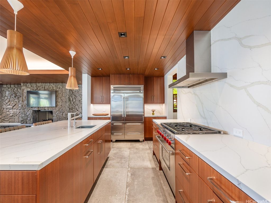 A tropical modern masterpiece embodying the essence of seamless indoor-outdoor living, showcasing over 120 linear feet of ocean frontage and breathtaking 180-degree views from Koko Head to Diamond Head. Blending luxury with an extraordinary island setting. The chef's kitchen featuring top-tier appliances including a Wolf gas range, Miele hood, Sub-Zero Pro 48" fridge, and Bosch dishwasher"”complemented by a butler's pantry with Fisher & Paykel fridge, dishwasher, and a powder room adorned with Fornasetti Italian wallpaper. Exquisite craftsmanship defines every detail, from the intricate ceiling designs to the custom Sapele Mahogany doors and window frames. Elegant lighting by Fortuny and Fontana Arte adds warmth and sophistication, while smart-home technology, air conditioning, pocketing doors, and Florim porcelain tile flooring ensure comfort and connection throughout the kitchen, living spaces, and lanai. Outdoors, a tiled pool, spa, koi pond, and cascading waterfall create a tranquil retreat, while a private pier with steps leading directly into the ocean invites you to swim, paddle, snorkel, fish, or surf, all from your own backyard. This isn't just a home, it's a lifestyle!