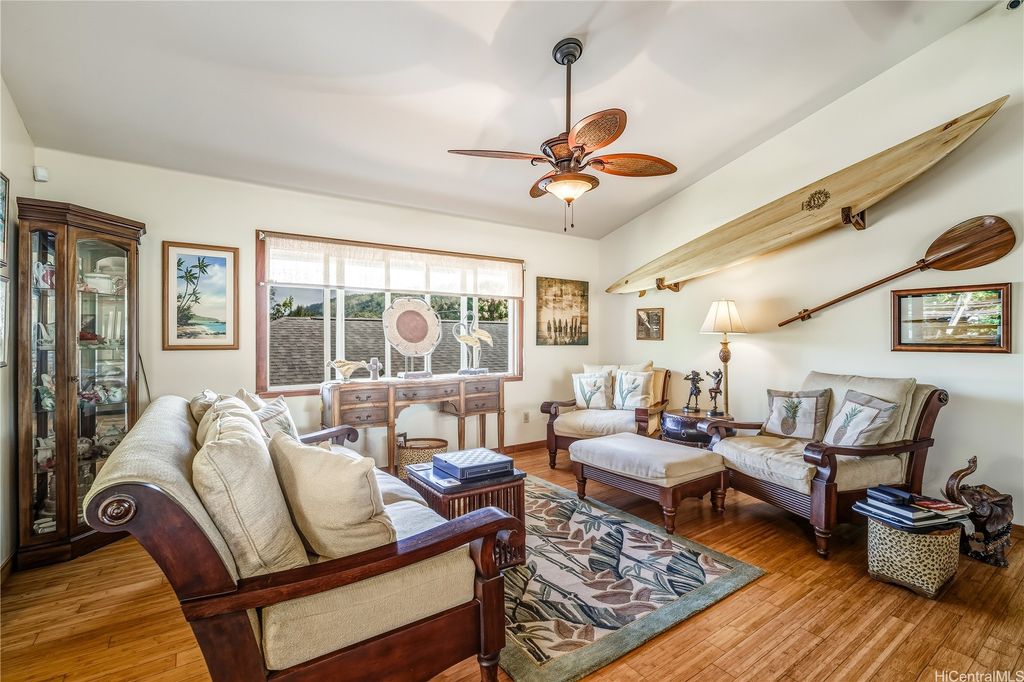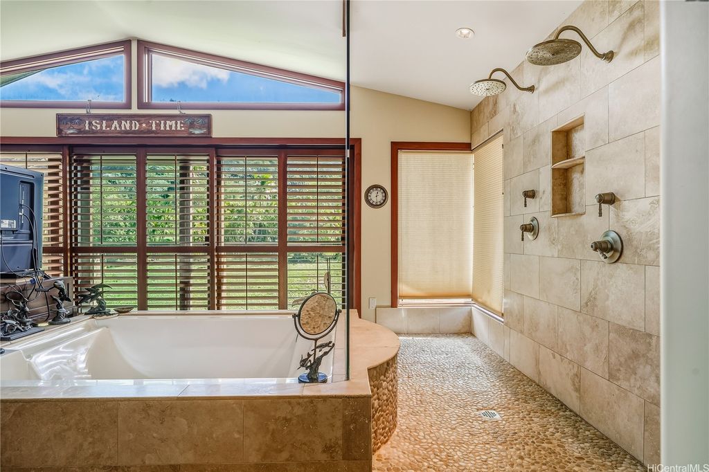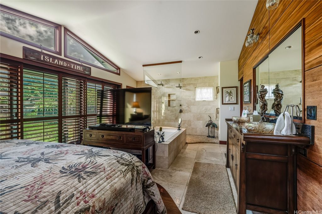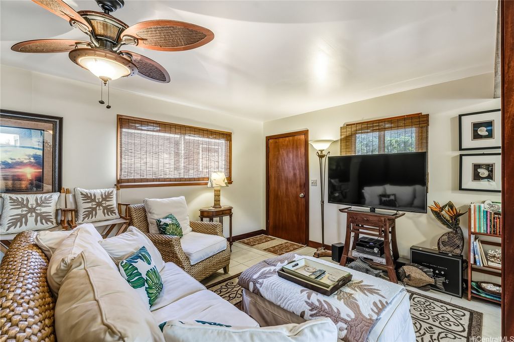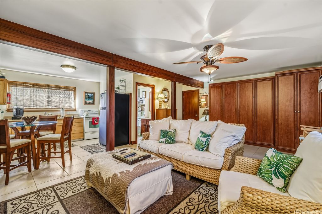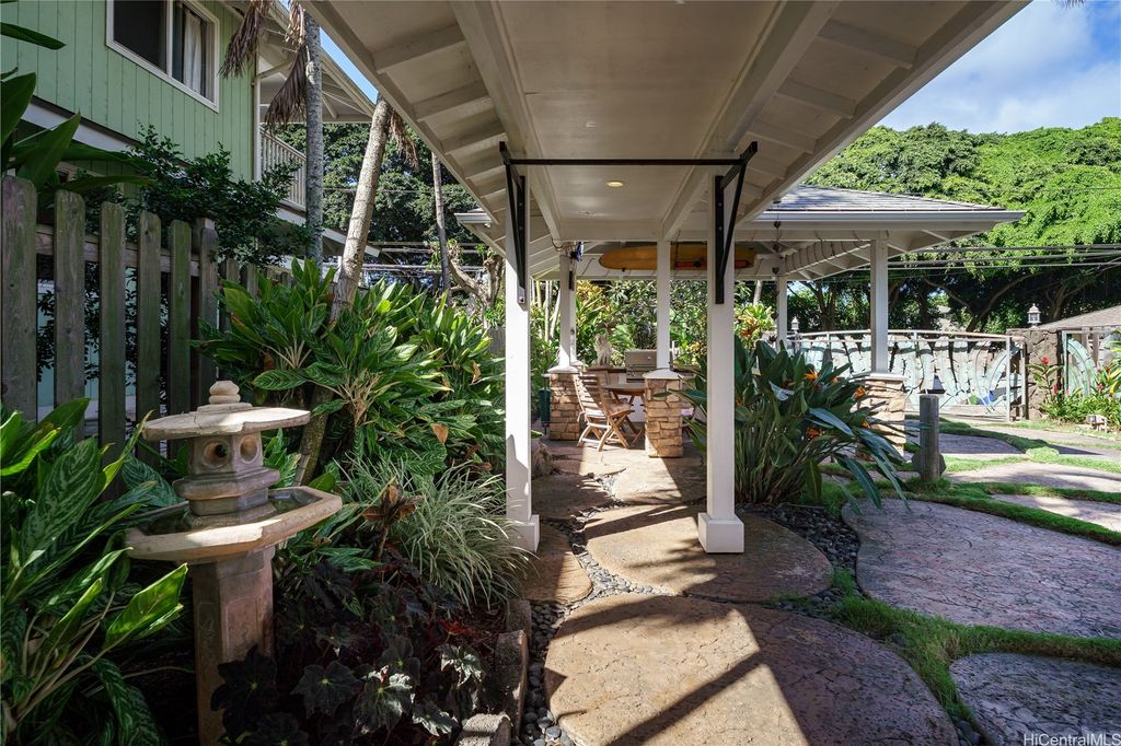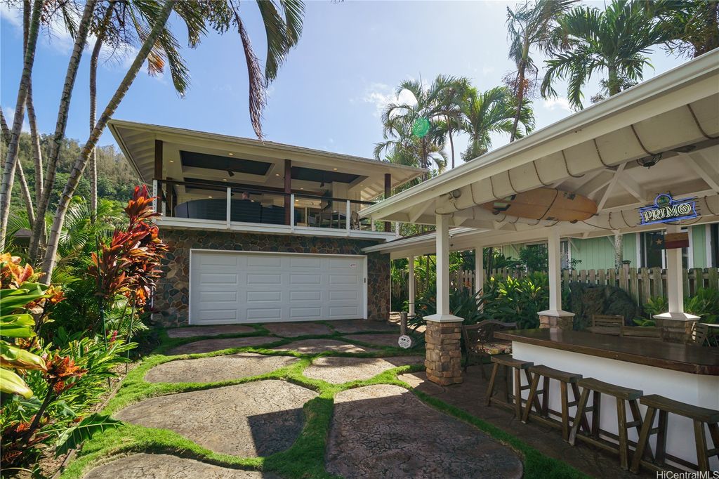 Steps from the world-class Log Cabins surf break, this beautifully redesigned coastal home offers 2 bedrooms, 3 baths, and exceptional indoor-outdoor living. The main level features a spacious primary suite with vaulted ceilings, an oversized soaking tub, and a custom shower, plus an office with a built-in queen Murphy bed. Major remodels in 2008 and 2016 added hardwood, stone, and travertine throughout. A standout feature is the professionally built, soundproof music room"”ideal for rehearsing, recording, or enjoying a quiet bonus space. Outdoors, multiple expansive living areas provide room for lounging, dining, and entertaining, including two covered lanais, one with a full outdoor kitchen. A separate furnished studio with a king Murphy bed offers an excellent guest space or rental option. Additional highlights include a 2-car garage with surfboard storage, a dumbwaiter for easy transport of groceries and gear, sleeping for 6 adults with Murphy beds, and included furnishings.