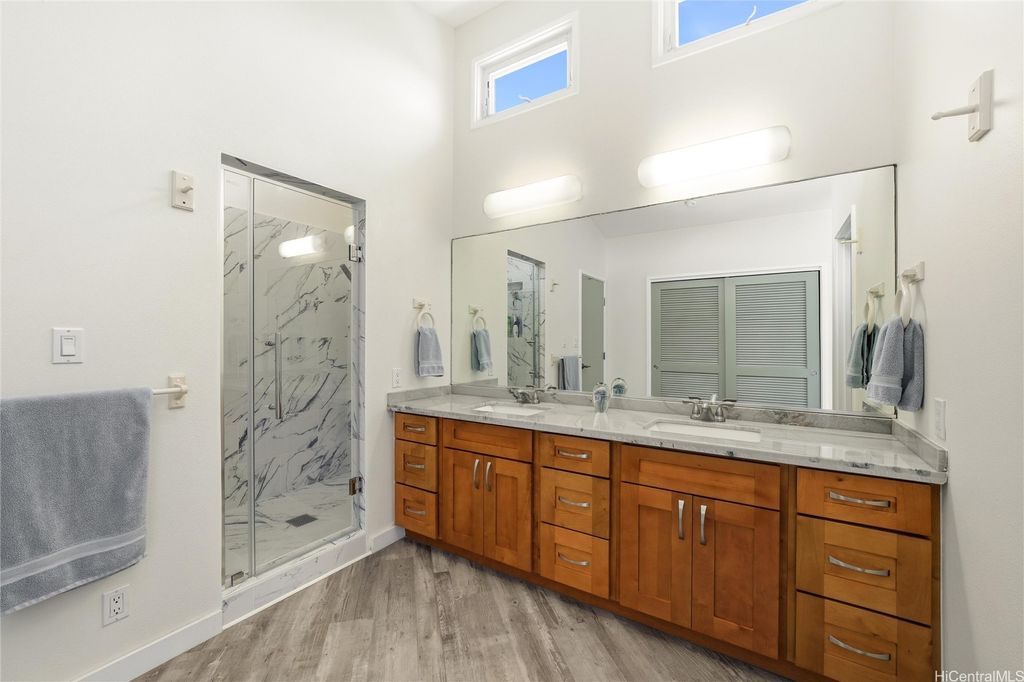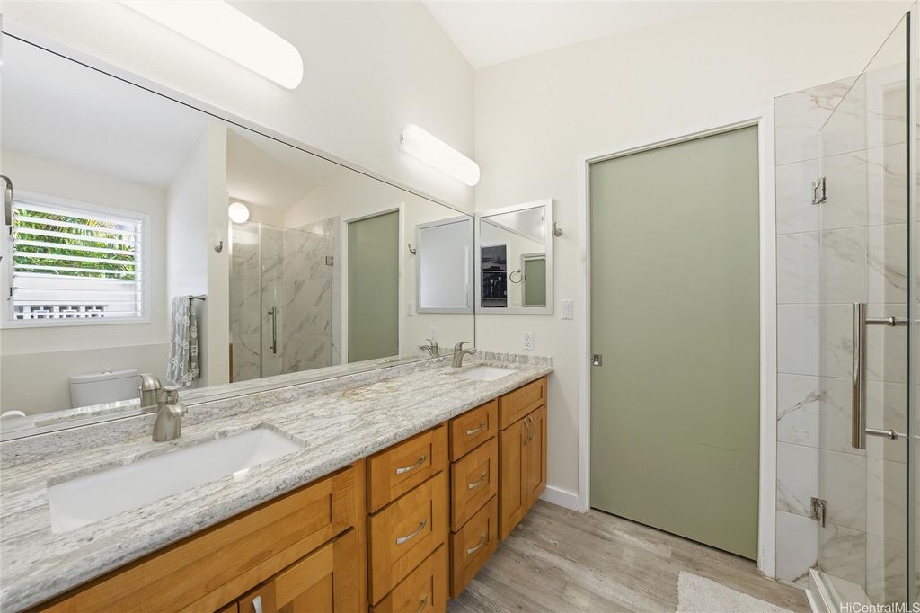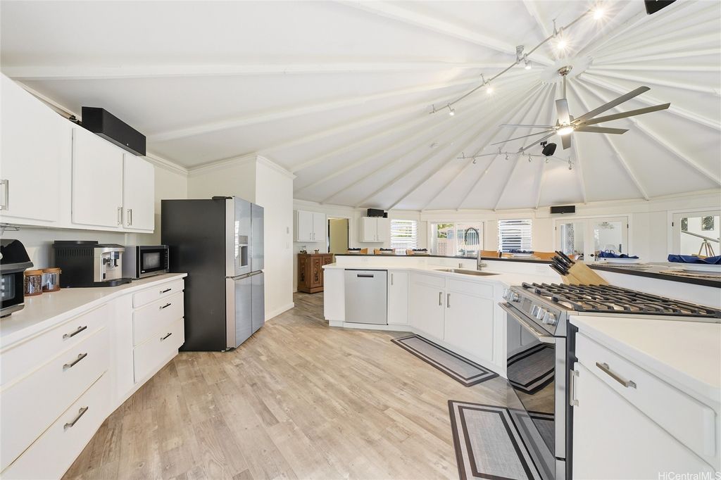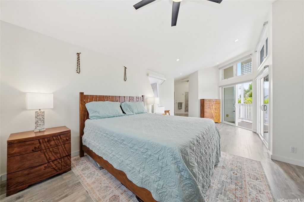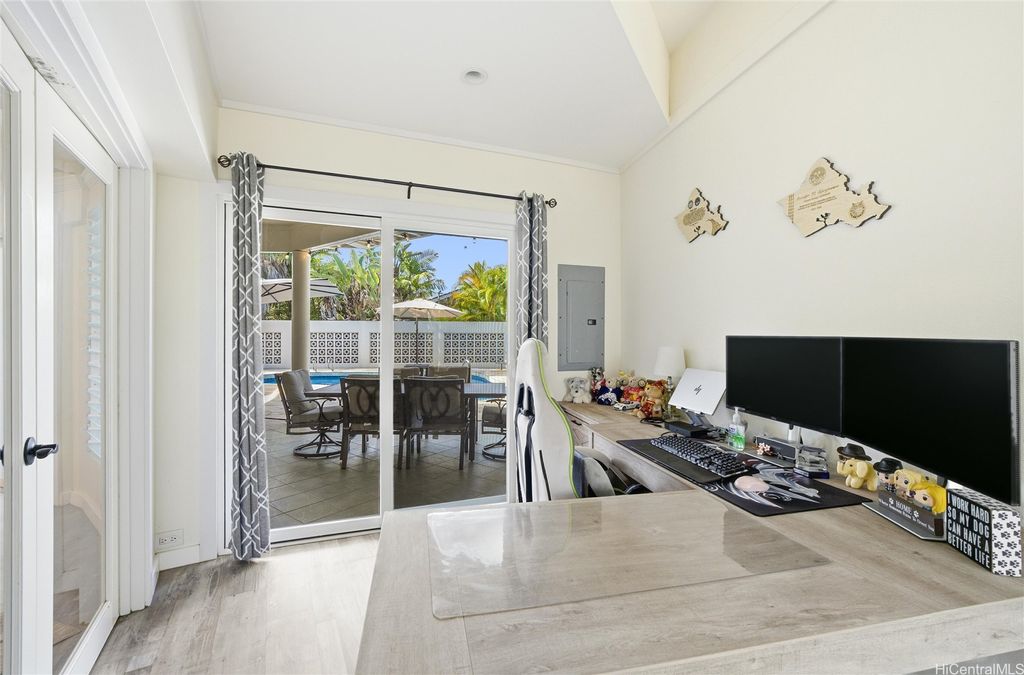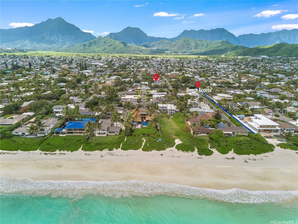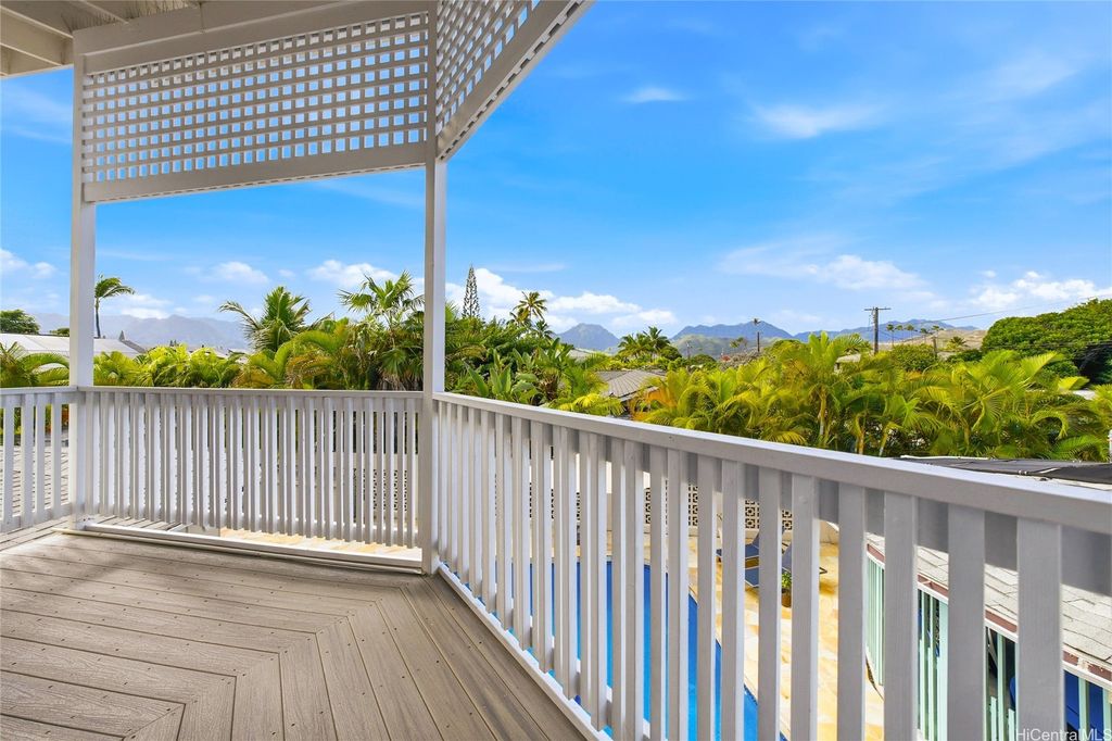 Island Living at its best "” Just One Block from Kailua Beach on the corner of Palapu Street. Step into this one-of-a-kind 4-bedroom, 3.5-bath contemporary island home featuring vaulted ceilings and 2,936 sq.ft. of bright, open living space, all enclosed on a 10,000 sq.ft. lot. Relax or entertain around your solar-heated pool with both covered and open lanais"”perfect for seamless indoor/outdoor living. This property includes a 3-bedroom, 2.5 bath main home, with most living areas on the main level. The private upstairs primary suite offers a peaceful, ensuite retreat away from the main living spaces. In addition, there is an attached 1-bedroom, 1 bath with a kitchen that can be used as a rental or mother-in-law suite. Move-in ready with 30 owned PV panels (NET metering), split ACs in every room, luxury vinyl plank flooring, an upgraded kitchen, motorized blinds, updated lighting, and more. Additional highlights include two laundry areas, an attached workshop/storage room, a garage, and extra parking. Located in highly sought-after Kailua, close to dining, shopping, and endless watersports"”this home delivers comfort, flexibility, and modern island style. Your Kailua oasis awaits!