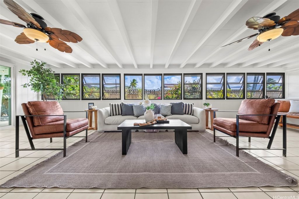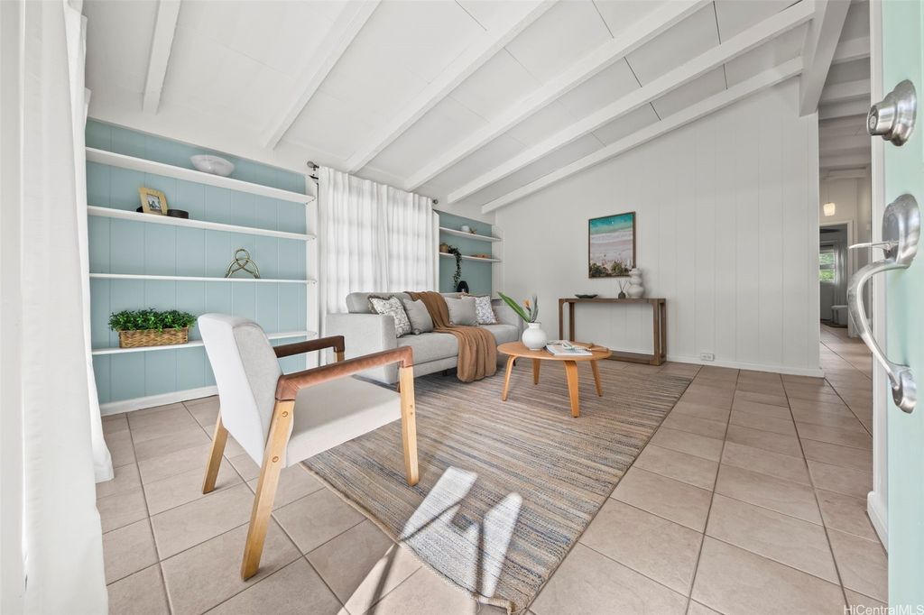 This single level home features a spacious open layout with tile flooring throughout, enhancing the bright and airy atmosphere. The oversized family room is perfect for entertaining, with sliding glass doors that open directly to the lush backyard. Enjoy the serene beauty of coconut and plumeria trees, along with a covered lanai, ideal for dining al fresco or relaxing in the cool island breeze. The primary suite includes a built-in desk, a private door leading to the rear yard and a tranquil space to unwind. All three bedrooms are equipped with split A/C units. For ultimate comfort. This home truly embodies the essence of island living, offering a desirable location at the end of street cul- de -sac in Kailua.