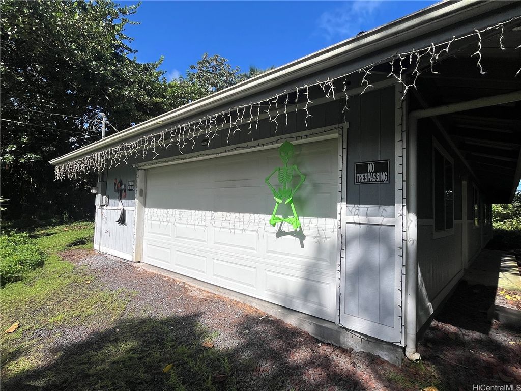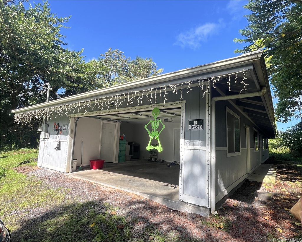 Hawaiian Shores is one of the rare neighborhoods in Puna District with the conveniences of paved roads, mail delivery and private water company (versus catchment). This pleasant community has a sweet ocean park at the end of Kahakai Street and there's a handy convenience store just down the street. You'll love living in this comfortable modern, 3 bedroom, 2 full bath home with high ceilings and open kitchen and living areas. Stainless steel appliances and gas range. Quartz kitchen and bathroom countertops. Wood laminate and ceramic tile floors with custom tiled showers and tubs. Ceiling fan in every bedroom. Enclosed garage includes a storage room, efficient tankless on demand water heater, utility sink and washer dryer hookups. The extra sized, almost 18,000sf lot goes from Kala St to Kahala St, so no neighbor behind. The home was built on a small hill so it can catch the tradewinds. So many possibilities with the large lot...add fruit trees, a garden and more. Oversized lot with frontage on 2 streets is well suited for adding an ADU with plenty of space in between. Consider the potential for multigenerational living, rental income or hosted vacation rental. So many possibilities!