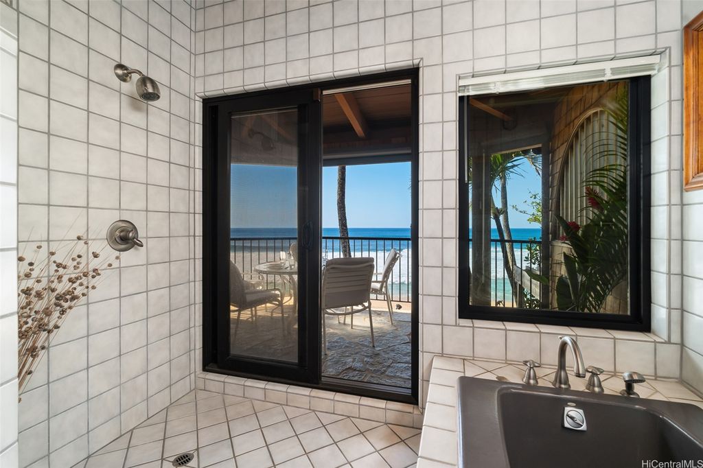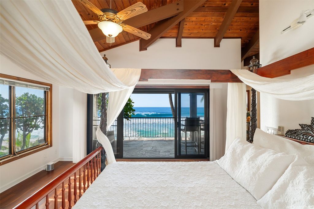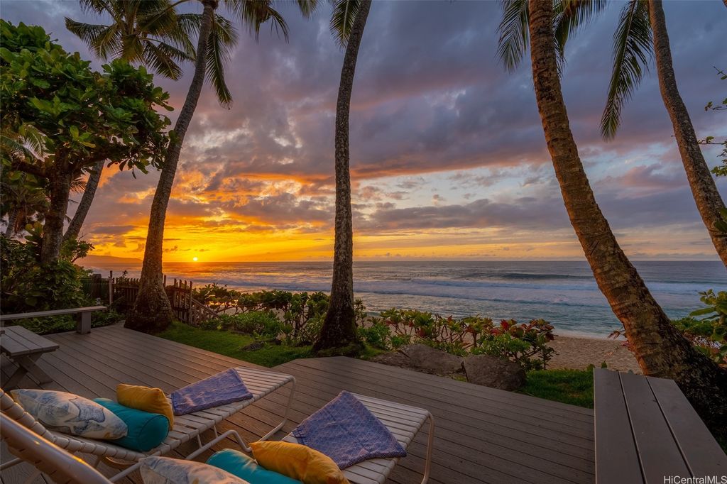 Front and center at Pipeline ~ absolutely unbeatable view into the most famous wave in the world! Relax in the comfort of your living room, downstairs open lanai, upstairs bedroom lanai or beautifully landscaped yard and watch the best surfers in the world take on this incredible iconic wave. This home has had only one adoring owner for 35 years and has been meticulously maintained as a family home. From first glance, the home will reveal that it has always been carefully maintained with detail, love and gratitude. From the cedar shake exterior siding and roof to the koa floors inside, high-quality appliances AND legal seawall you will feel surrounded by a sense of confidence, charm & security. Also includes outside hot water shower. This turn-key, well-built, fully-furnished beautiful home and property is available now. Shown to qualified Buyers by appointment only. Listing agent must be present.