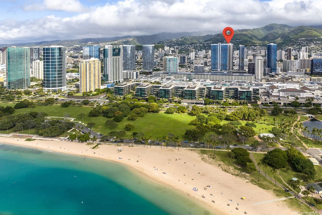 Sky Ala Moana West, completed in 2023, is ideally located in Midtown Ala Moana, close to Ala Moana Beach Park, Ala Moana Center, and Waikiki. This highly desirable 2-bedroom, 2-bath 08-stack residence features floor-to-ceiling windows, Silestone countertops, Bosch appliances, a full-size washer and dryer, split A/C in every room, dual sinks in the primary bath, two custom walk-in closets, a large entry storage closet, and a 96 sq. ft. lanai with stunning city and mountain views. The unit also includes two side-by-side parking stalls and a storage locker. Designed in partnership with the Renaissance Marriott Hotel, Sky Ala Moana's two towers offer exceptional resort-style amenities, including two heated saltwater pools, saunas, a cold plunge, an indoor/outdoor fitness center, hot tubs, BBQ cabanas, party rooms, a dog park, and more. Just one block from Target, Walmart, and Ala Moana Center"”and minutes from the beach and Waikiki"”this is an amazing opportunity to own in one of Honolulu's premier newer developments.
