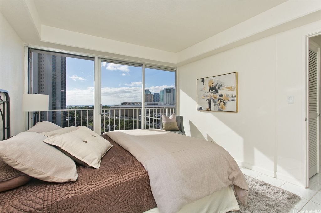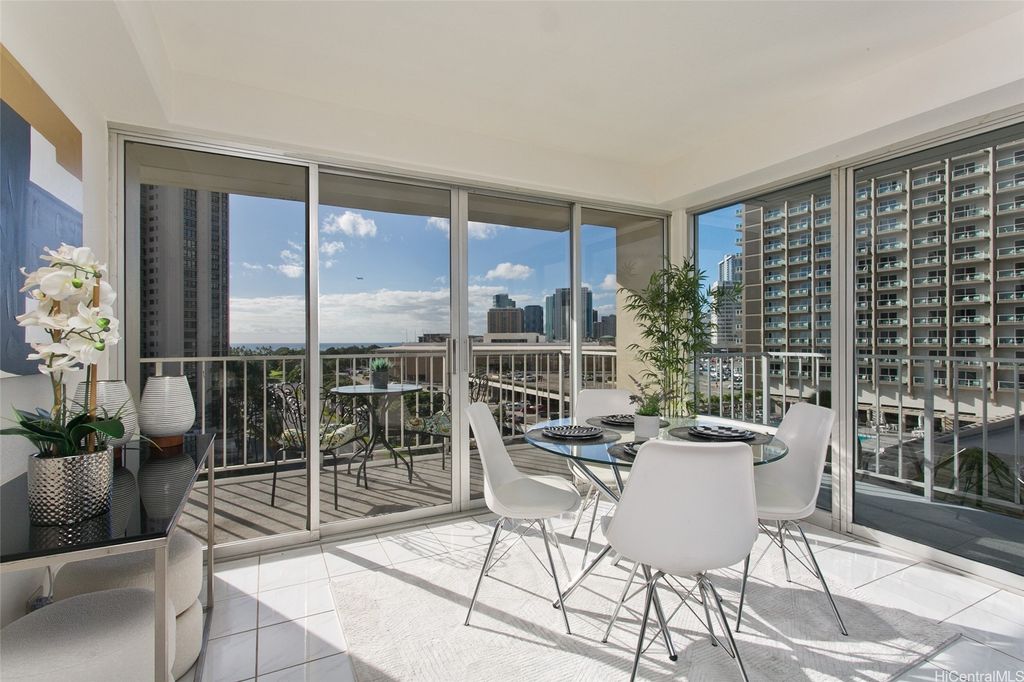 OCEAN VIEWS. 1139 Sq Ft. Check the Surf before walking to the beach. Convenient! Across Ala Moana Shopping Center. Corner unit. Bright, Breezy. 239 sq ft of lanais that may be enclosed for more living area. Freshly painted. NO popcorn ceiling. New appliances. Updated baths. Covered Secured Parking on the ground floor. No honking up circular driveway. Building Re piped. 100% Hurricane Insurance. Good Reserves. Pet Friendly. 40 lb limit. Multiple pets Ok. VA Approved. Storage. OPEN HOUSE Dec 7th 2:00-5:00