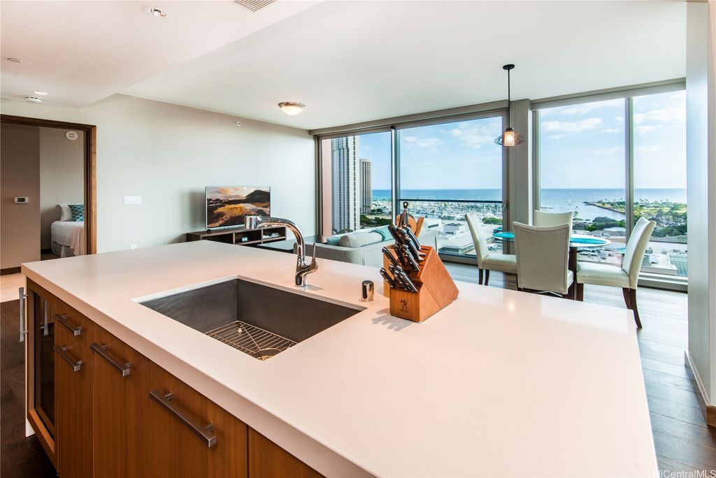 Enjoy the simple elegance, convenience, and comfort of One Ala Moana. The expansive floor-to-ceiling glass windows frame the majestic views of the Ala Moana Beach Park, Ala Wai Boat Harbor, sunset, and beautiful Honolulu city lights. The high-end kitchen appliances and European cabinetry provide a luxurious cooking experience. The two-bedroom/two-bathroom unit is fully furnished, including a full-sized washer/dryer and walk-in closet. One Ala Moana provides residents with exclusive amenities that include: a pool and spa, kiddie pool, BBQ cabanas, gym, lounge, private dining and chef's kitchen, wine tasting room, theater, massage room, shopping salon, and more! With all these amenities and a convenient location, this is the perfect place to spend your Hawaiian vacation!