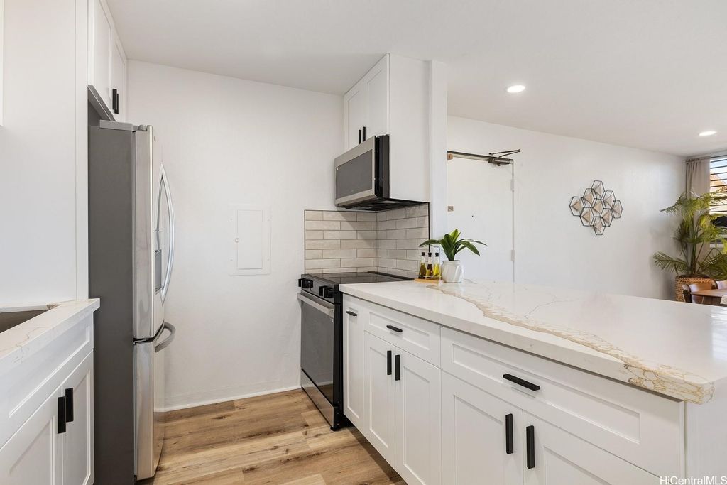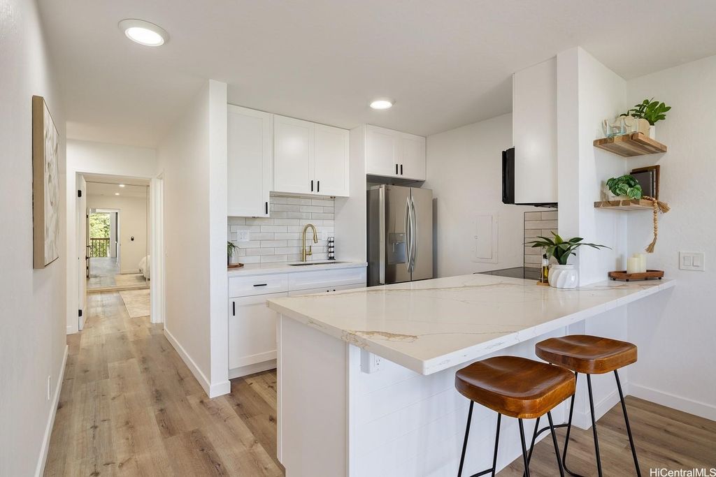 Don't miss this fully renovated, turn-key 3-bedroom, 1-bath townhome, just 5 minutes from the world-famous Makaha Beach! Three-bedroom units are rarely available"”especially in move-in-ready condition. This spacious home features luxury vinyl plank flooring throughout, quartz countertops in the kitchen and bathroom, brand-new appliances, and abundant cabinet and storage space"”perfect for full-time living or a vacation retreat. Enjoy the convenience of TWO assigned parking stalls and a full range of resort-style amenities, including multiple swimming pools, spas, children's wading pools, a self-serve car wash station, tennis/pickleball courts, and a basketball court. Situated in a lush, beautifully landscaped gated community with 24/7 security patrol, Makaha Valley Plantation offers peace of mind and the true island lifestyle. Schedule your private showing today"”this rare opportunity won't last!