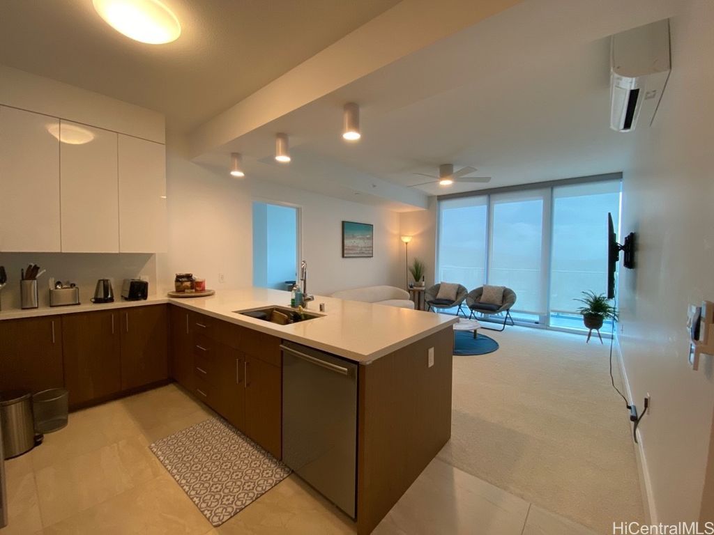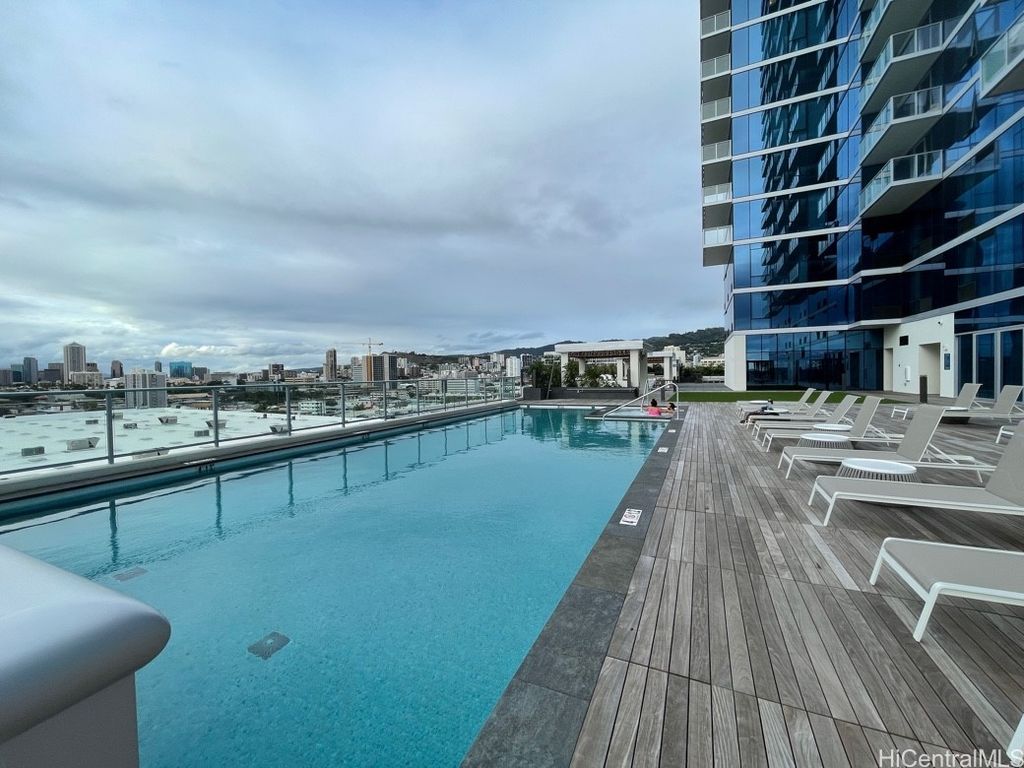 Completed in 2021, this high floor Azure Ala Moana FULLY FURNISHED 2 bedroom, 2 bath, 2 parking unit is located in the same neighborhood of Ala Moana Shopping Center, Ala Moana Beach, many fabulous restaurants and Walmart. Enjoy breathtaking ocean, mountain, Magic Island and city views through floor-to-ceiling windows. This spacious two-bedroom unit features quartz countertops, floor to ceiling windows with ocean, mountain, city and sunrise views. Resort like amenities include pool and spa, movie theater, fitness center, club lounge w/kitchen, barbecue pavilions, dog park and electric vehicle charging stations. AVAILABLE FROM 12/22/2025.