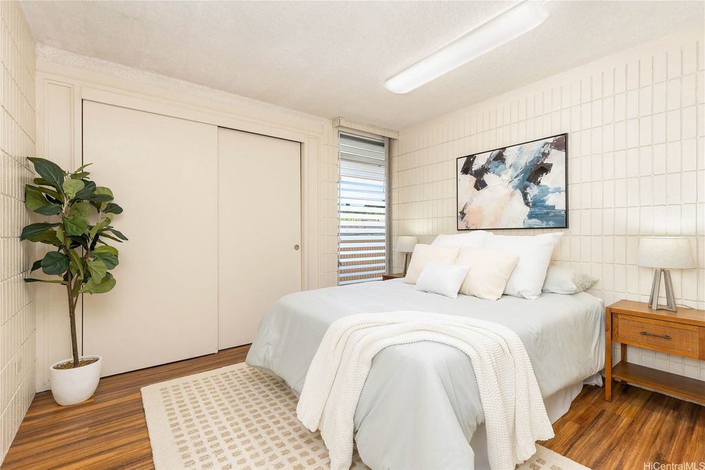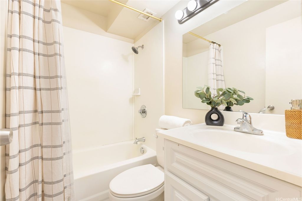 Looking for a spacious 3-bed residence that's move-in ready under 450k? This home has been thoughtfully upgraded with LVP flooring in the living spaces, refreshed kitchen granite countertops and shaker cabinets, and an upgraded bathroom vanity with quartz. Both tubs were reglazed to bring a clean, renewed feel throughout. The extra-large lanai comes with its own storage closet, a rare second-floor feature in this building, and provides a peaceful area to enjoy outdoor moments without leaving the comfort of home. A full-size washer and dryer add everyday convenience, concrete walls create a peaceful and private environment, and the security screen door welcomes cooling island breezes. Two covered tandem parking stalls, a secured building with on-site security, and amenities including a pool, recreation deck, fitness center, sauna, game room, and dog park round out the features of this community. All of this is conveniently located moments from daily needs, including freeway access, Moanalua Shopping Center, parks, and desirable schools. Close to Pearl Harbor, Fort Shafter, Tripler and Kaiser medical centers, and the airport, this home has everything you need within easy reach.