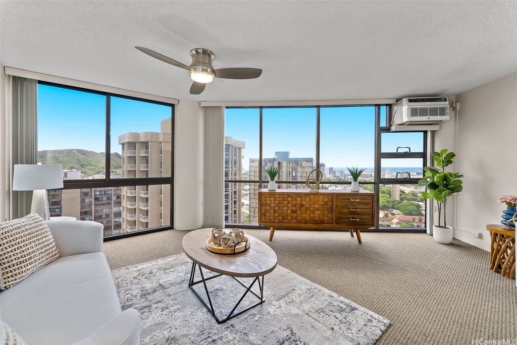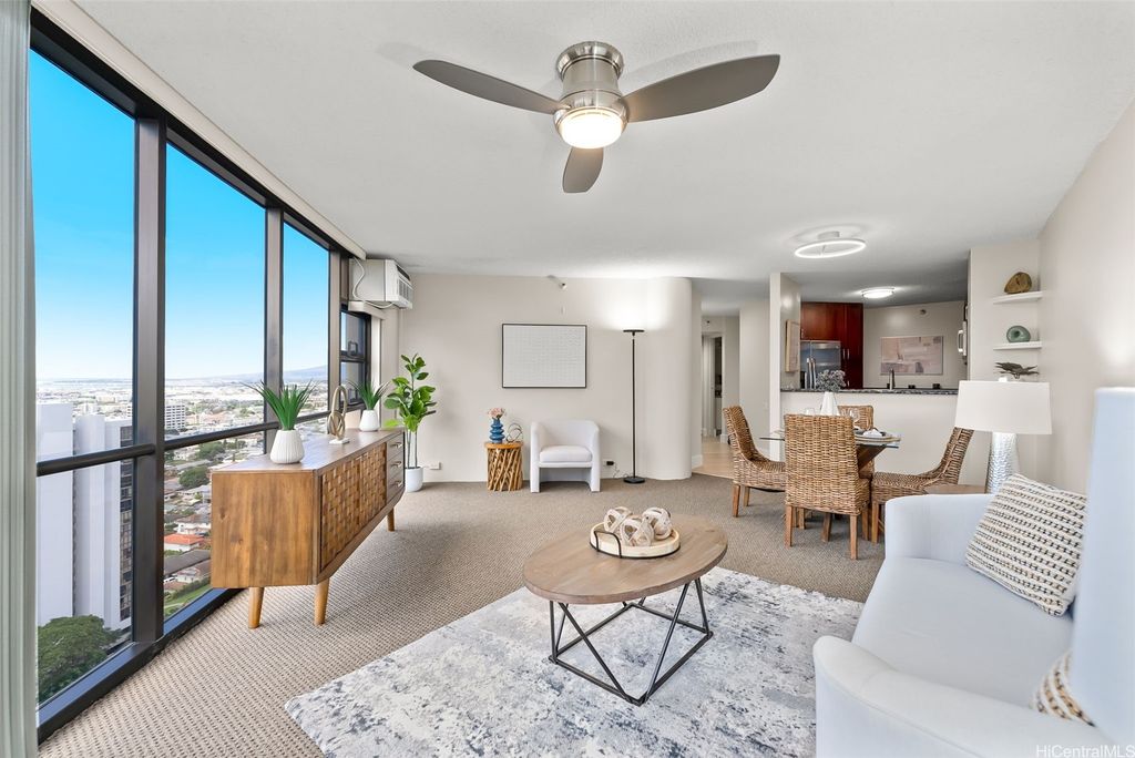Located in the lush Nuuanu Neighborhood, Craigside is a beautifully maintained building with amenities galore. This spacious, high floor (almost 800 sf)1 bedroom, 1 bathroom unit offers panoramic views of ocean, city and downtown Honolulu with historical buildings and more. Bright, airy and spacious home that is close to revitalizing downtown, easy access to Pali Hwy, Chinatown, hospitals, grocery stores and schools. Assigned parking is on the basement floor and close to the elevator for ingress and egress. Craigside, a pet friendly building, has 2 swimming pools and tennis courts in a garden like setting, fitness center, security guards and resident manager.