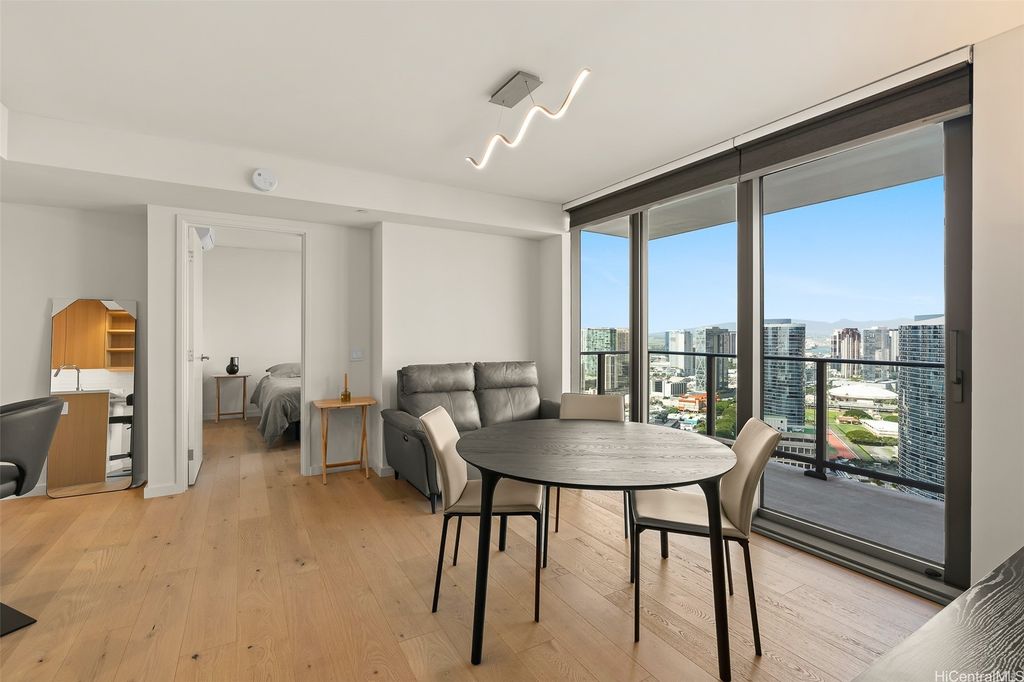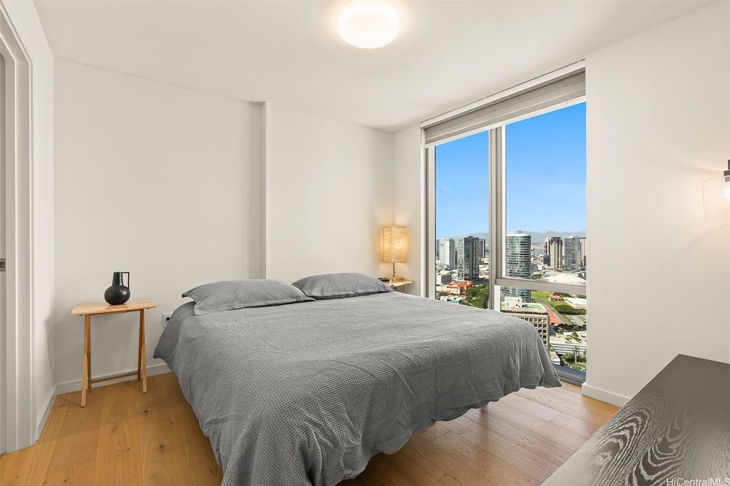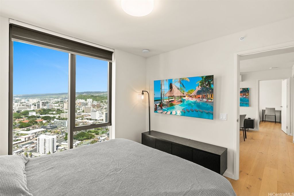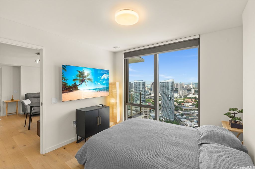FULLY FURNISHED - Experience the pinnacle of sophisticated high-rise living in this fully furnished 2 bedroom / 2 bathroom / 1 parking unit with EV charging station in Sky Ala Moana West. Beautifully furnished with a 4K television in each room, kitchenware and linen! Modern design with floor-to-ceiling windows, hardwood floors, motorized shades and large closets for extra storage. Relax on the lanai and take in the unobstructed mountain, city and partial ocean views. The Sky Terrace eighth-floor amenity deck is one of the largest in Honolulu. Enjoy resort-like amenities featuring a pool whirlpool spa, lap pool, BBQ cabanas, fitness center, playground, party rooms, spa with dry and steam sauna and so much more! Tenant pays: Electricity and renters insurance required prior to occupancy and for duration of lease term. Utilities included: Basic tv cable, basic internet/Wi-Fi, water/sewer. Application instructions will be provided after showing. $25 application fee per applicant, anyone 18 and over must apply. NO SMOKING, e-cig, vape, and any other in the unit or on the property