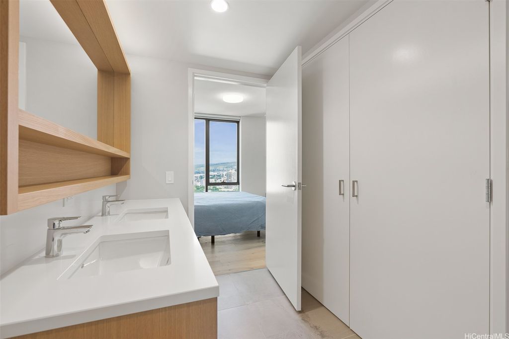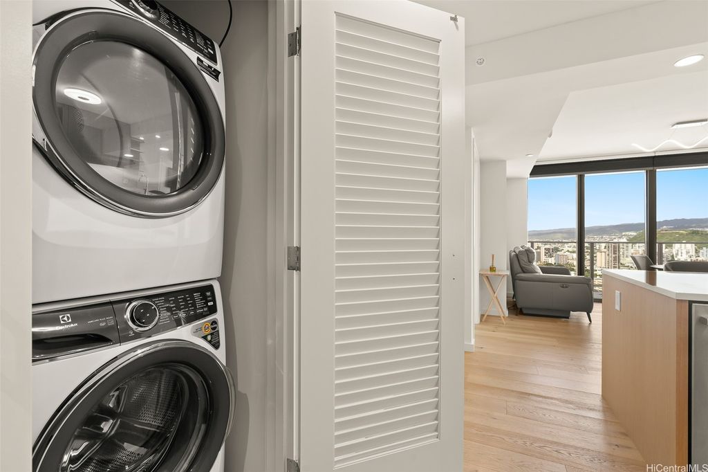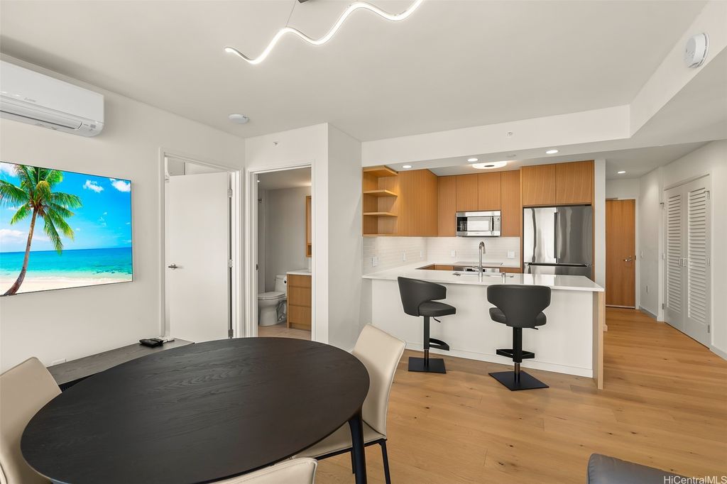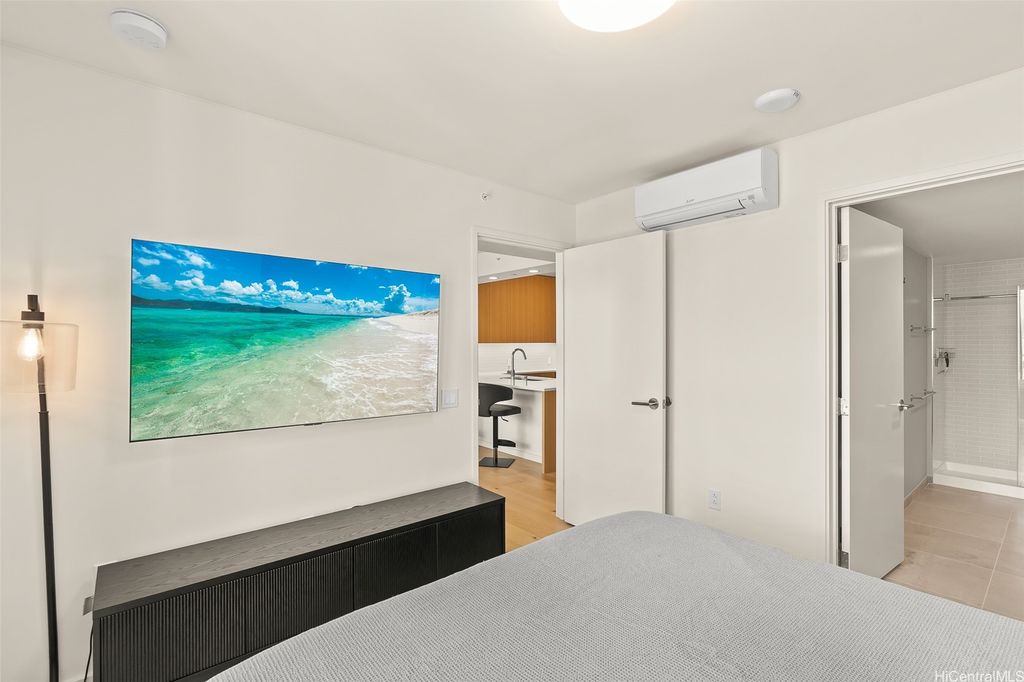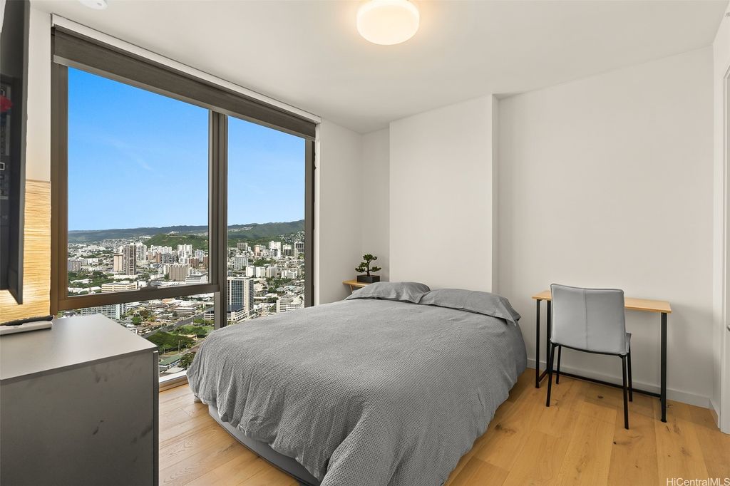 FULLY FURNISHED - Experience the pinnacle of sophisticated high-rise living in this fully furnished 2 bedroom / 2 bathroom / 1 parking unit with EV charging station in Sky Ala Moana West. Beautifully furnished with a 4K television in each room, kitchenware and linen! Modern design with floor-to-ceiling windows, hardwood floors, motorized shades and large closets for extra storage. Relax on the lanai and take in the unobstructed mountain, city and partial ocean views. The Sky Terrace eighth-floor amenity deck is one of the largest in Honolulu. Enjoy resort-like amenities featuring a pool whirlpool spa, lap pool, BBQ cabanas, fitness center, playground, party rooms, spa with dry and steam sauna and so much more! Tenant pays: Electricity and renters insurance required prior to occupancy and for duration of lease term. Utilities included: Basic tv cable, basic internet/Wi-Fi, water/sewer. Application instructions will be provided after showing. $25 application fee per applicant, anyone 18 and over must apply. NO SMOKING, e-cig, vape, and any other in the unit or on the property