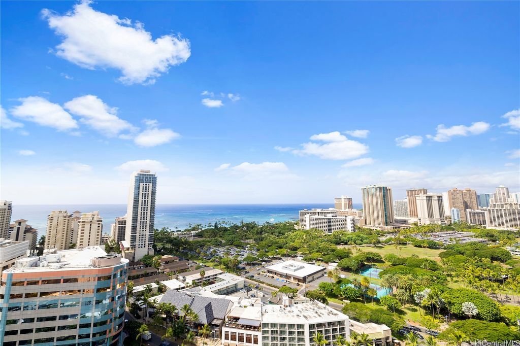 Experience luxury living at the Ritz-Carlton Residences Waikiki, one of the few 5-star resort destinations in Waikiki. This rare corner 2-bedroom, 2-bath unit in Tower 2 offers stunning panoramic views, from the Ko'olau Mountains to the Ocean. The interior features high-end finishes, a full kitchen, and a spacious living area that opens to a covered lanai with 180-degree views. Enjoy world-class amenities including infinity pools, a fitness center, spa, and on-site dining, Very close of Waikiki Beach, shops, and restaurants in the heart of Waikiki.