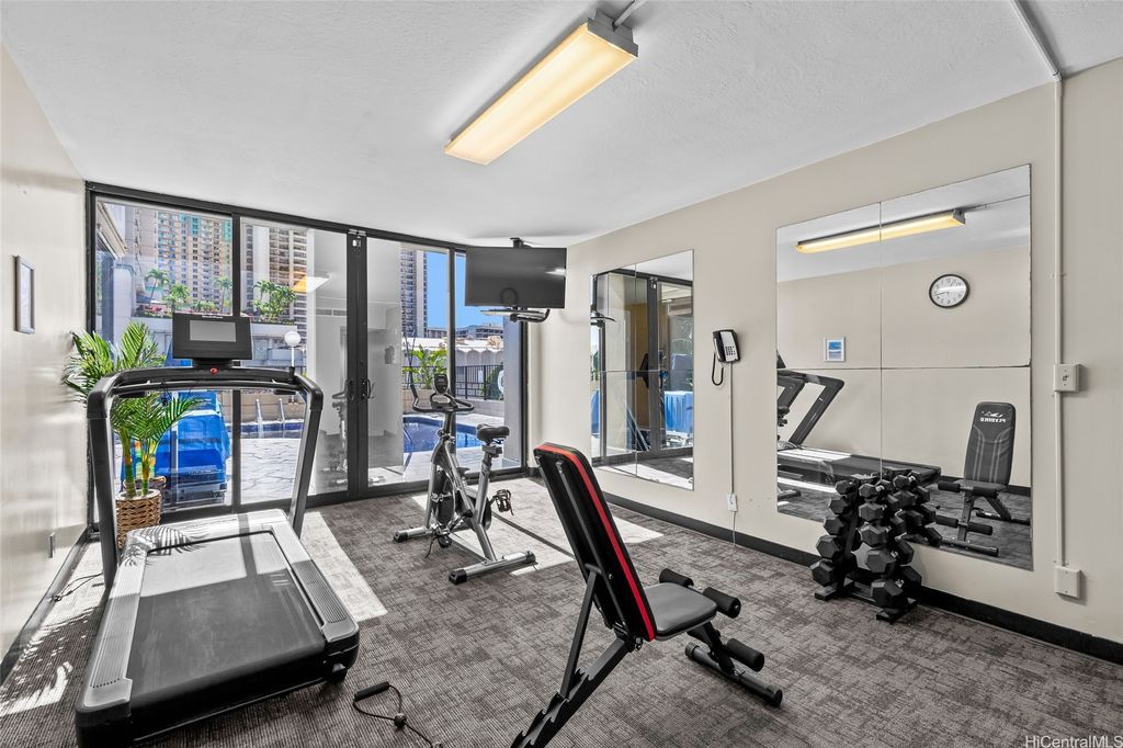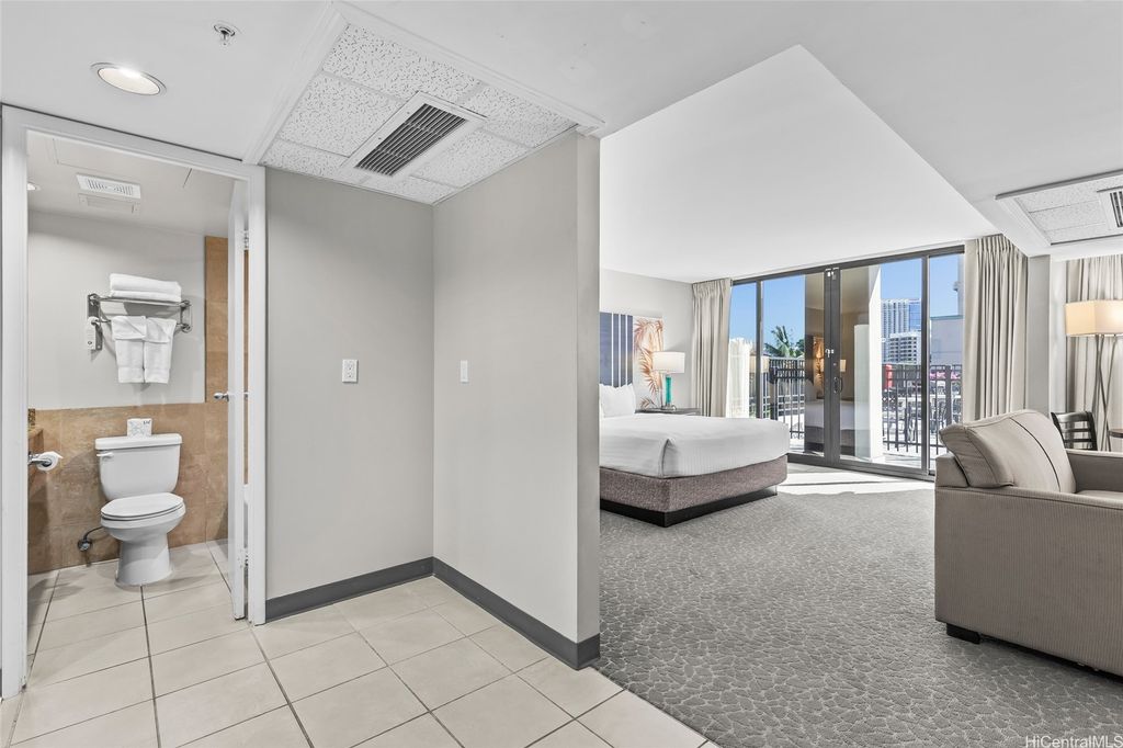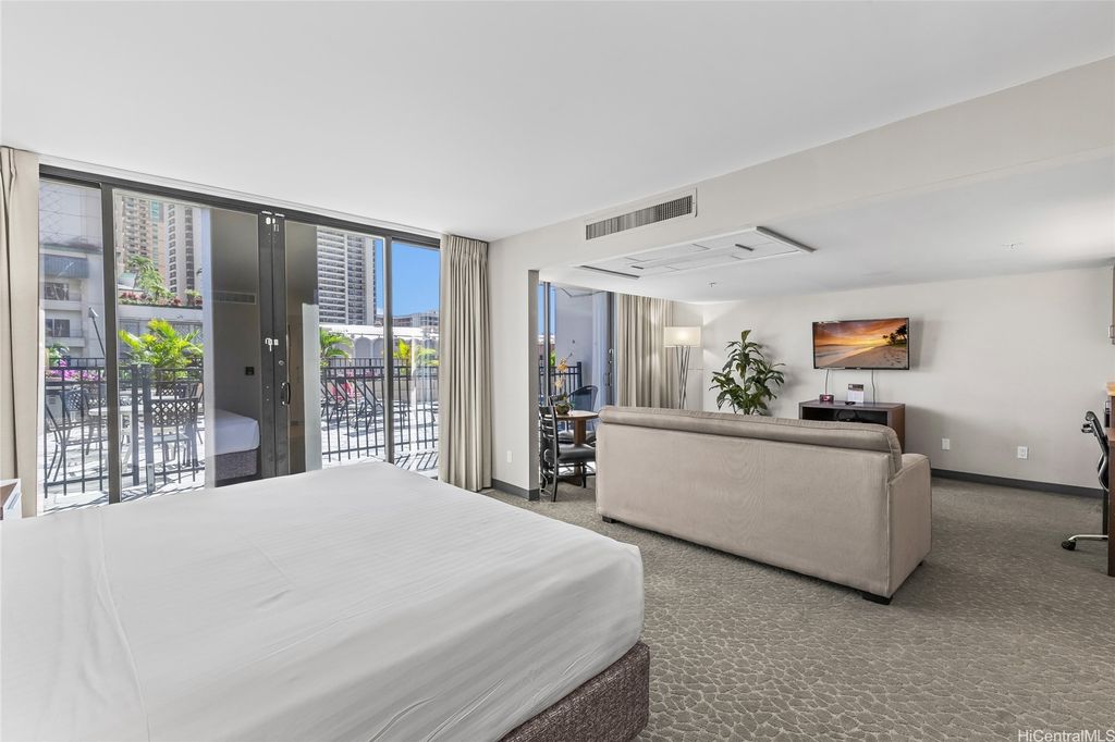 Palms at Waikiki #206 offers a rare opportunity to own a legal short-term rental in one of Waikiki's premier condo-hotel destinations. This extra-large studio"”approximately 550 sq. ft. of interior space"”stands out with its generous layout and the added benefit of a dedicated parking stall, an uncommon advantage for STR properties in Waikiki. Situated on the 2nd floor (equivalent to the height of the 5th floor), this move-in-ready unit provides direct access from the lanai to the resort-style swimming pool and fitness room, creating a seamless indoor-outdoor experience for residents and guests. Perfect as an investment property or personal retreat, the unit features central air conditioning and is fully furnished for immediate use. All utilities are conveniently included in the maintenance fee, covering electricity, internet, hot water, sewer, and central AC"”simplifying ownership and enhancing value. With its prime location across from Hilton Hawaiian Village and just moments from Waikiki Beach, shopping, dining, and island activities, this unit presents an exceptional blend of convenience, flexibility, and income potential in a highly desirable condo-hotel setting.
