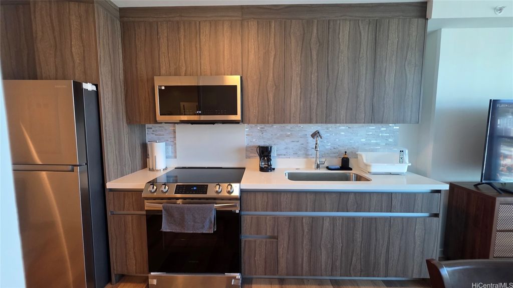 Wake up to modern urban living in this furnished, brand-new studio at The Park on Ke"˜eaumoku. This contemporary unit features solar shades for privacy, as well as ocean, city, and mountain views. An assigned parking stall is included for added convenience. Ideally located near Ala Moana Center, Ala Moana Beach Park, Waikiki, and within walking distance to Sam's Club, Walmart, Don Quijote, Palama Supermarket, restaurants, and cafés. Inside, the studio is equipped with new stainless-steel appliances, stacked washer/dryer, 65-inch TV, WiFi, and energy-efficient split A/C for comfortable living. Residents have access to a wide range of resort-style amenities, including an infinity pool, fitness center, yoga studio, sauna and spa, co-working space, theater and media room, club lounges, poolside cabanas, and BBQ pavilions. Tenant responsible for electricity and renter's insurance. Service animals or emotional support animals must be disclosed with the application.