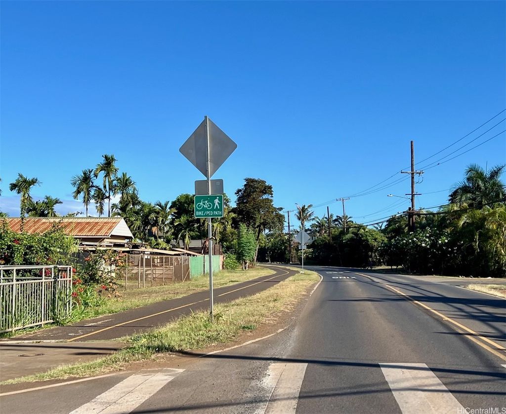 Pet friendly, single family North Shore home with large fenced yard that backs up to the Waialua Bike Path. Large storage area off carport can be used as an office, shop or play room with half bath just outside the door and outdoor shower near the driveway. Two blocks from the beach, mountain views, 1/4 mile from Waialua Elementary School and Waialua District Park with swimming pool, pickleball/tennis courts, playground, bathrooms, baseball/soccer/football field with lights for night time games. Large living area with extra bonus room and additional mud room/office off the kitchen. Plenty of parking inside and outside the fenced yard. Come experience small town living with big time charm and a great sense of community! Easy 15 minute commute to Schofield Barracks, 20 minutes to Wheeler Army Airfield, HMR and NCTAMS.
