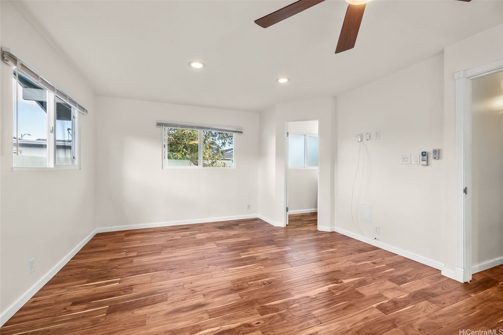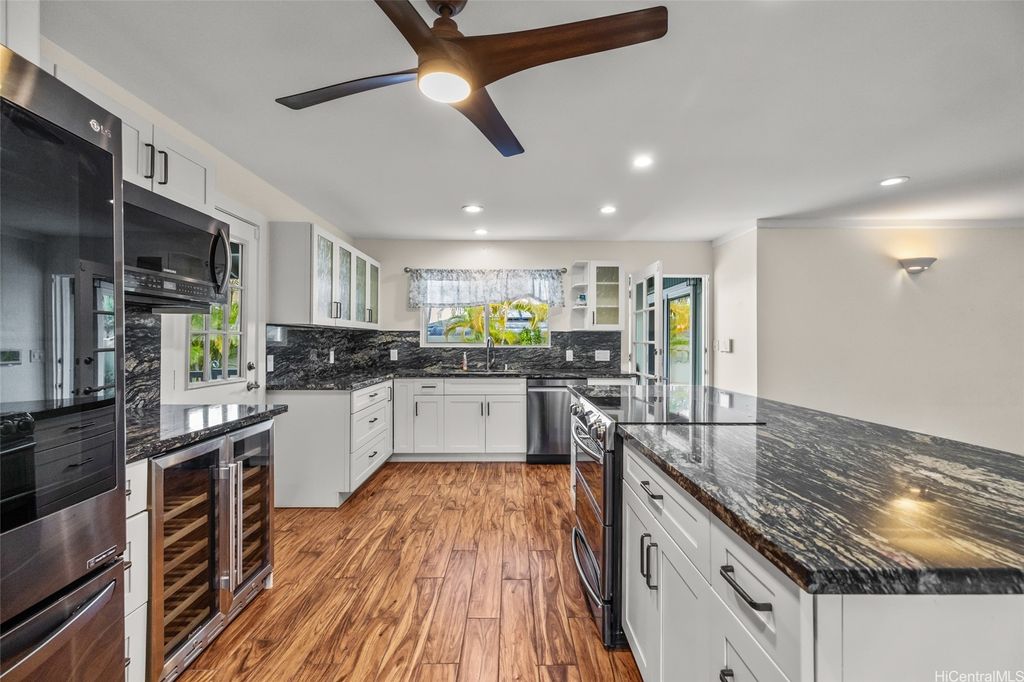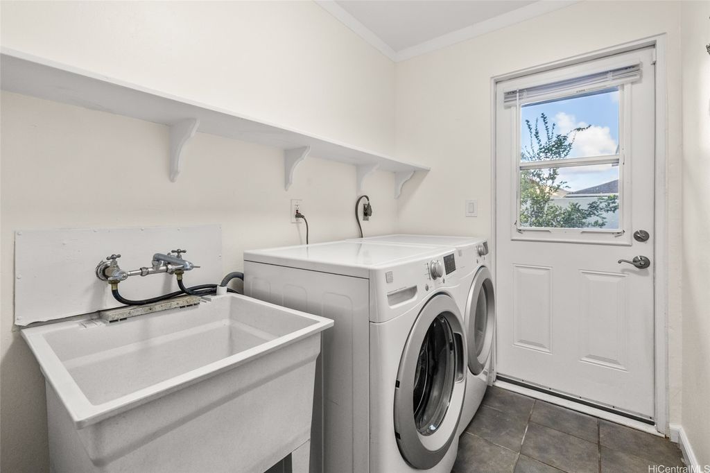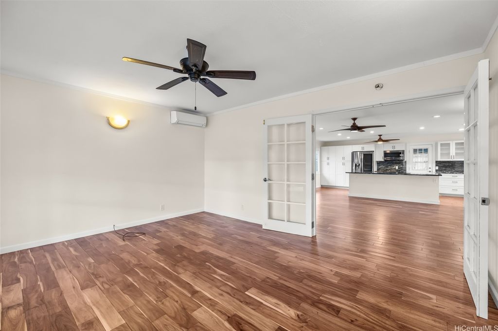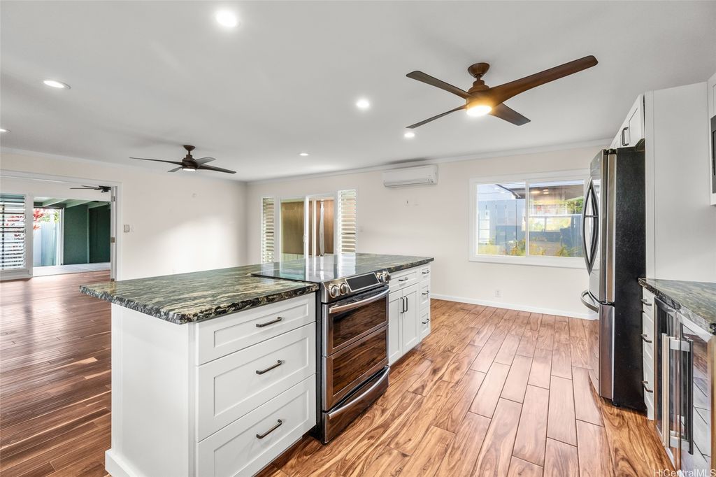 Discover this beautiful home located in the highly sought-after Kaopa neighborhood of Kailua! After a long day, unwind by the inviting saltwater pool. This residence features 3 bedrooms and 2 bathrooms, with an open-concept kitchen and living room. There is also a family room that leads to the back lanai. The laundry area is equipped with a sink, washer, and dryer, all located in a dedicated interior space. The garage offers generous storage closets. Additionally, the home includes split air-conditioning units throughout and an owned photovoltaic (PV) system. Move-in Ready to welcome its new owners!