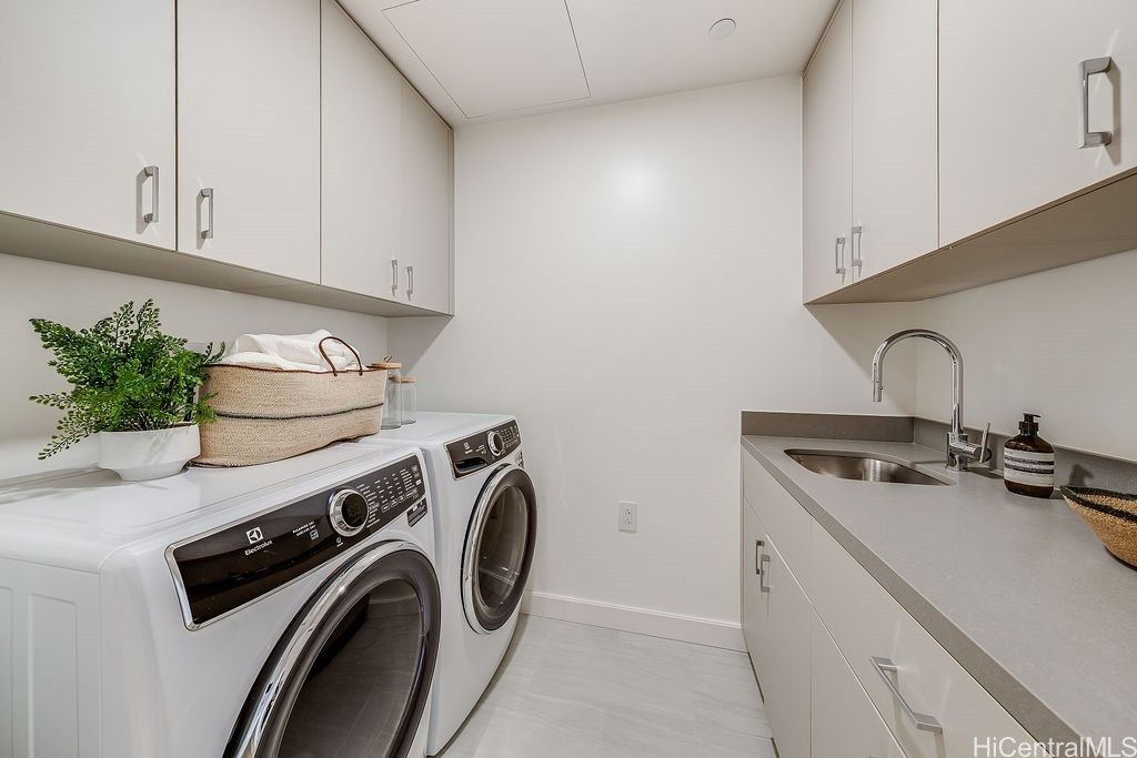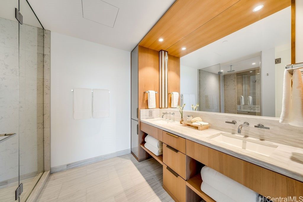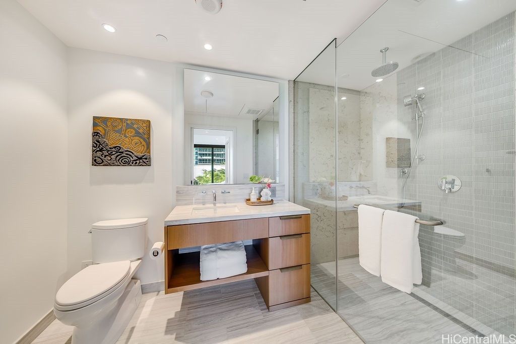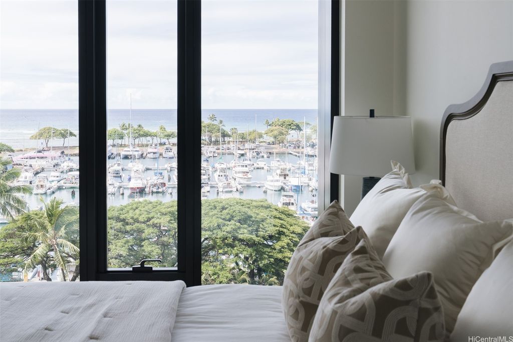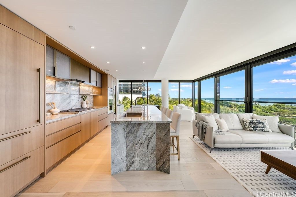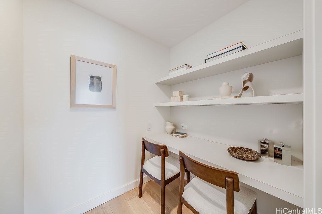 Rarely available 3-bedroom, 3-bathroom unit in the much-desired East-facing '00 stack of Ward Village's newest development, Victoria Place. This corner end unit features strong views overlooking the Pacific Ocean, the boat harbor and Diamond Head. Three well-sized bedrooms, an office nook, and a separate laundry room round out this functional living space, which also features custom-designed cabinetry by Studio Becker, Sub-Zero refrigerator, Wolf gas range, oven, and microwave. Victoria Place is a 350-unit luxury development designed by Architect Solomon Cordwell Buenz and placed on the front row of Ward Village. The common areas feature lush, green landscaping by VITA Planning and Landscape Architecture, and the resort-style amenities are in abundance, including a lap pool and lounge pool with ocean views, wine cave, spa, hot and cold plunge pools, fitness center, movie theater, and 24/7 concierge and valet service. This unit comes with two side-by-side parking stalls on the second floor w/an EV-ready 240V electrical outlet, which was installed during construction. No storage unit will be conveyed with this unit sale.